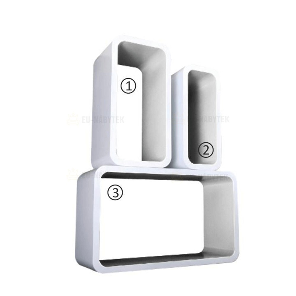 Barva: bílá Rozměry ŠxHxV: 1 - 40x10x20 cm, 2 - 36x10x16 cm, 3 - 44x10x24 cm. Cena je za 3 ks. AMOS sada polic 3 ks v provedení bílá