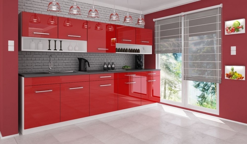 Luxusní kuchyně vhodná i do panelákových bytů. Tato kuchyně je navržena tak, že skříňky se dají poskládat v libovolném pořadí. To vám umožní si sestavit kuchyni podle svých představ. Pracovní deska je v barvě grafit, která je dodávána vcelku 180cm (kromě skříňky na dřez). Sokl i korpus jsou v bílé barvě. Spodní i horní dvířka jsou v červené barvě v lesku. Sestava se skládá ze spodních skříněk - výška 82, hloubka 45, šířka 80/60/60/60 cm a vrchních skříněk - výška 58, hloubka 30, šířka 100/60/100 cm. Úchyty jsou plastové a mají šedou barvu. Pracovní deska je v ceně. Spotřebiče, dřez a digestoř v ceně nejsou. Kuchyň nabízíme také v dalších barevných variantách - dole na této stránce. Možnost doobjednání dřezu. Dodáváme v demontovaném stavu.