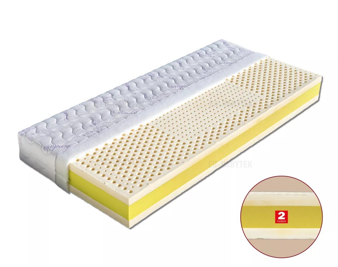 Jádro matrace je složeno ze dvou třízónových latexových desek tloušťky 5 cm (55 kg/m³) a antibakteriálního jádra (40 kg/m³) s úpravou Sanitized, která poskytuje trvalou a účinnou ochranu před mikroorganismy. Díky svým ortopedickým vlastnostem je vhodná pro všechny věkové kategorie, ocení ji alergici i lidé se zvýšenou péčí o klouby. Výborně se přizpůsobuje tvaru těla a přináší maximální pohodlí po celou dobu spánku. Větrací otvory zajišťují optimální cirkulaci vzduchu a efektivně odvádějí vlhkost. Matrace je vhodná na všechny typy lamelových roštů. Celková výška matrace cca 21 cm.