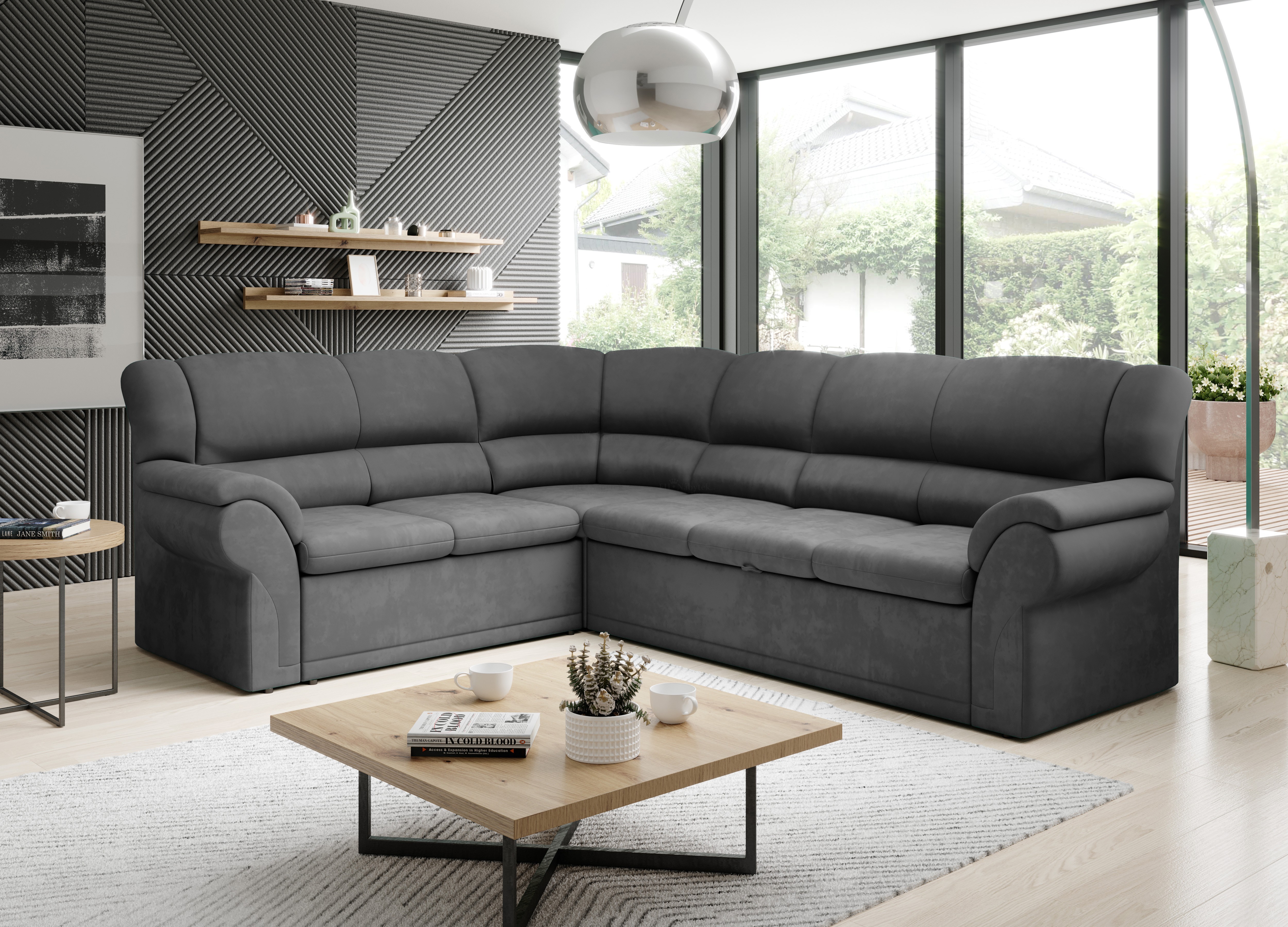 Rohová celočalouněná sedačka Alexia je extravagantní kousek, který bude apelovat na všechny, i ty nejnáročnější zákazníky. Sedačka obsahuje úložný prostor formou praktického výsuvného šuplíku a prostor pro příležitostné spaní. Po rozložení je spací plocha 205x120cm. Pohodlné sezení zaručují vlnovcové pružiny Faliste spolu s PUR pěnou T30. Alexia je čalouněna kvalitní látkou Berlin 02. V nabídce ji naleznete ve spoustě dalších barvách.