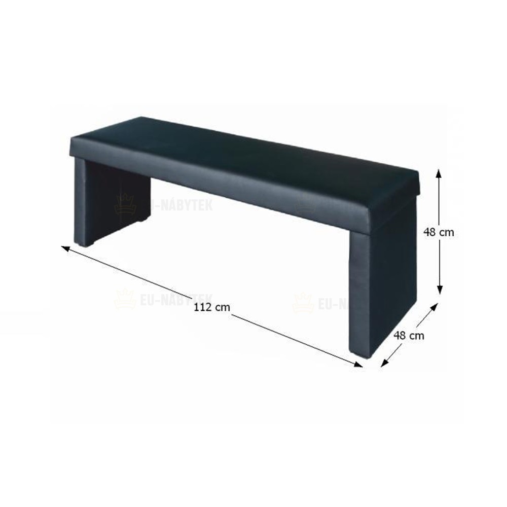 Lavice MODERN Materiál: ekokůže Barevné provedení: černá Rozměry (ŠxHxV): 112x48x48 cm Nosnost lavice: max 150 kg Dodávané v demontu.