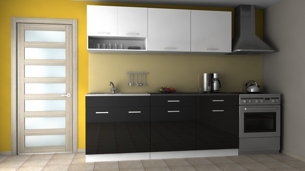 Luxusní kuchyně vhodná i do panelákových bytů. Tato kuchyně je navržena tak, že skříňky se dají poskládat v libovolném pořadí. To Vám umožní si sestavit kuchyni podle svých představ. Pracovní deska je v barvě grafit vcelku 120cm. Sokl i korpus jsou v bílé barvě. Spodní dvířka jsou v černém lesku a horní dvířka jsou v bílé barvě v lesku. Sestava se skládá ze spodních skříněk - výška 82, hloubka 45, šířka 80/60/60 cm a vrchních skříněk - výška 58, hloubka 30, šířka 80/60/60 cm. Úchyty jsou plastové a mají šedou barvu. Pracovní deska 120 cm je v ceně. Spotřebiče, dřez a digestoř v ceně nejsou. Kuchyň nabízíme také v dalších barevných variantách. Možnost doobjednání dřezu. Dodáváme v demontovaném stavu. Dvířka jsou v lesku.