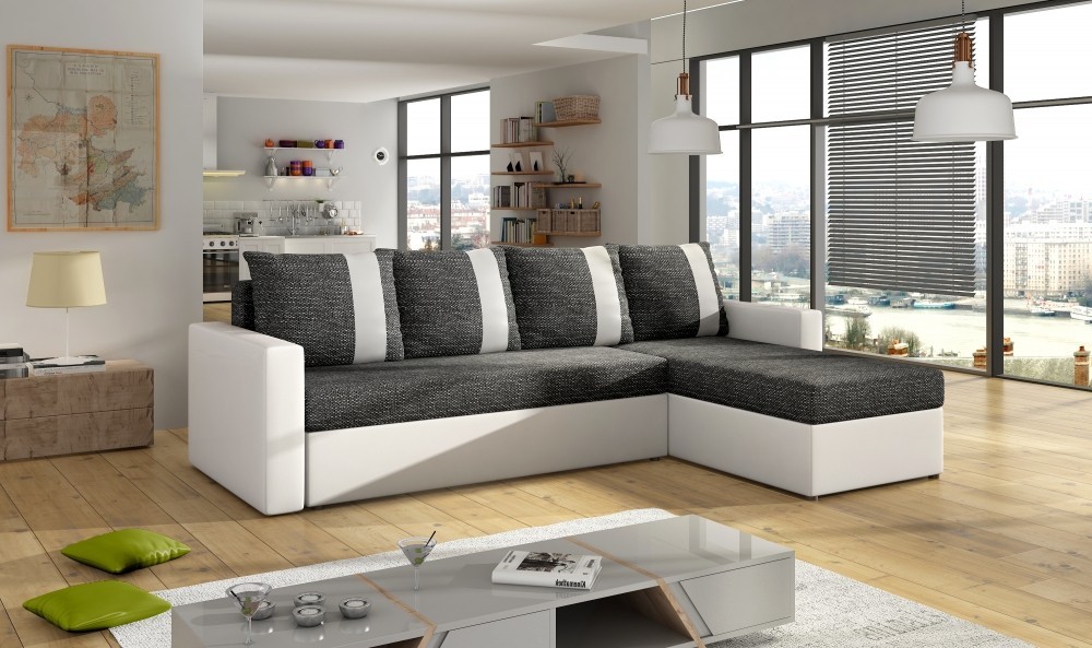 Praktická celočalouněná rohová sedačka s netradičním a velmi moderním vzhledem. Díky kvalitním pružinám Faliste a vysokoelastické pěně T30 si dopřejete pohodlné posezení. Sedačka obsahuje praktický úložný prostor a prostor na příležitostné spaní. Po rozložení získáte spací plochu o rozměru 115x203cm. Při rozkladu se sedák nadzvedne a přesune dopředu, zadní část se sklopí do vodorovné polohy a polštáře oddělají. Čalouněná je látkou Berlin 02 a ekokůží Madryt 1100. V nabídce i v jiných barevných kombinacích. Lze zakoupit také taburet.