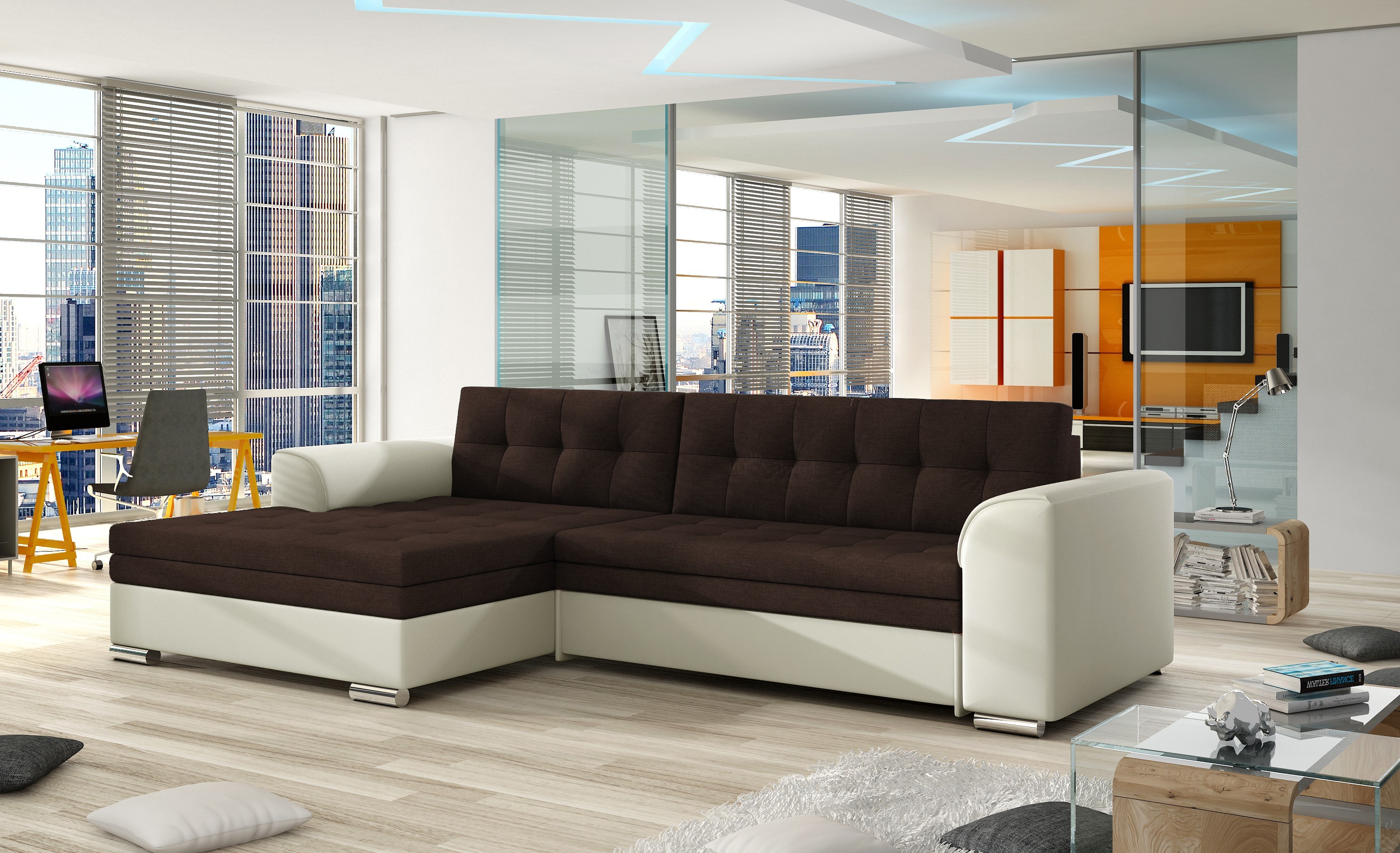 Moderní rozkládací sedačka Forti díky pružinovému jádru Faliste spolu s kvalitní PUR pěnou T30 zaručuje pohodlné sezení a po rozložení i pohodlné občasné přespání. Spací plocha má po rozložení rozměr 200 x 126 cm. Možnost výběru pravého či levého provedení. Sedačka nemá úložný prostor. Ekokůže Soft 17. V nabídce i jiné barevné provedení.