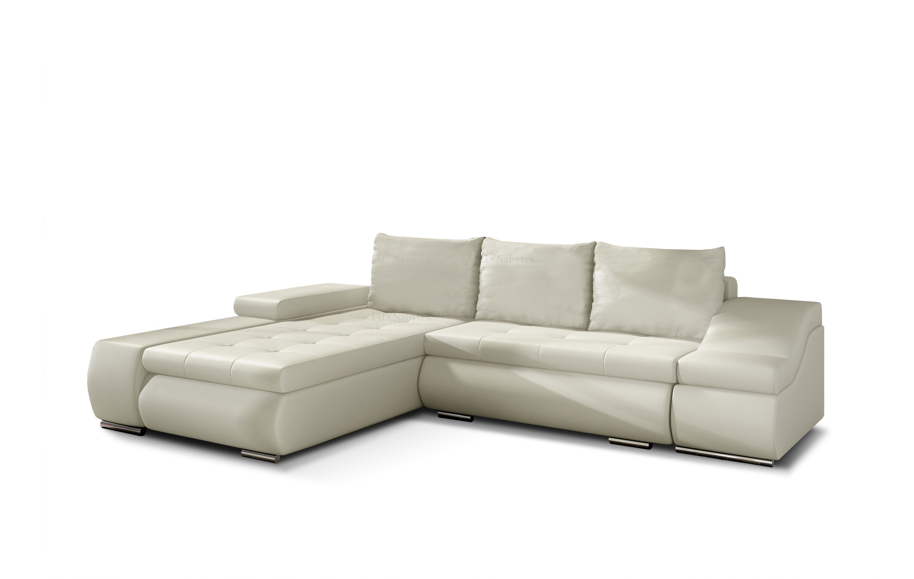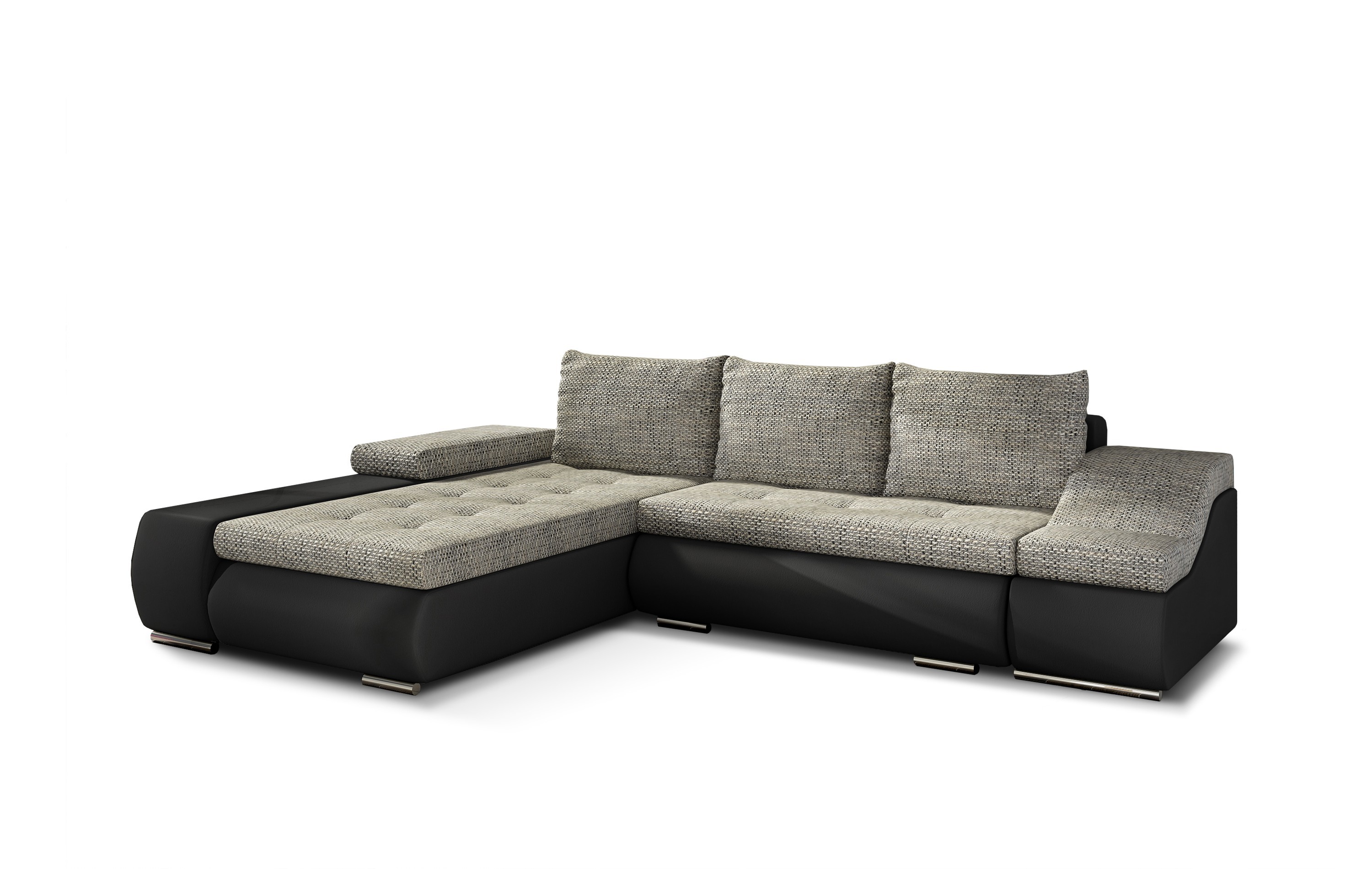 Netradiční rohová sedačka TORONTO s úložným prostorem a rozkladem pro příležitostné spaní. Po rozložení vzniká plocha na spaní 225 x 122 cm. Pohodlné sezení vám zaručí kvalitní pružiny Faliste a vysokoelastická pěna T30. Nadchne především zajímavou designovou područkou a kovovými stříbrnými nožkami. Barevné provedení - Berlin 01 a ekokůže Soft 11. Dodávano v demontu, 4 ks. V nabídce i jiné barevné kombinace.