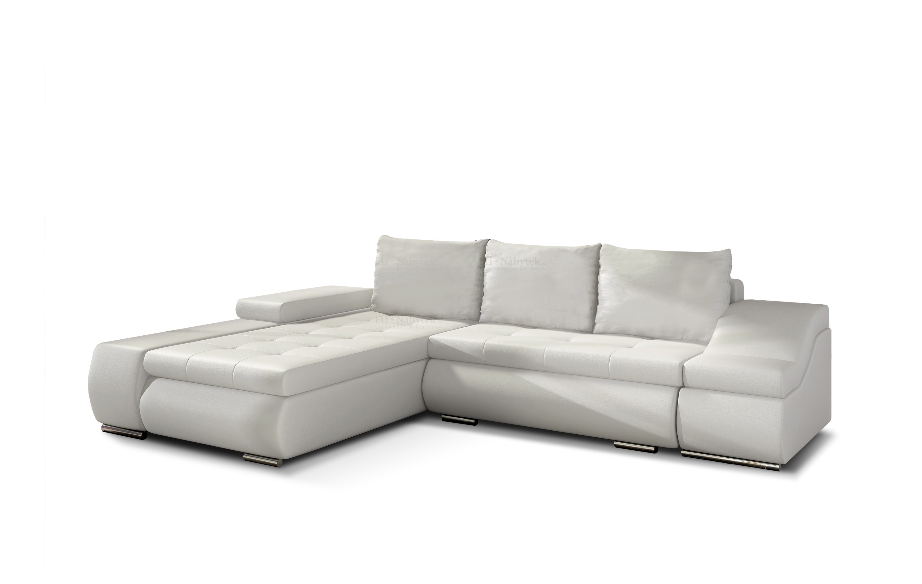 Netradiční rohová sedačka TORONTO s úložným prostorem a rozkladem pro příležitostné spaní. Po rozložení vzniká plocha na spaní 225 x 122 cm. Pohodlné sezení vám zaručí kvalitní pružiny Faliste a vysokoelastická pěna T30. Nadchne především zajímavou designovou područkou a kovovými stříbrnými nožkami. Barevné provedení - béžová ekokůže Soft 33. Dodávano v demontu, 4 ks. V nabídce i jiné barevné kombinace.