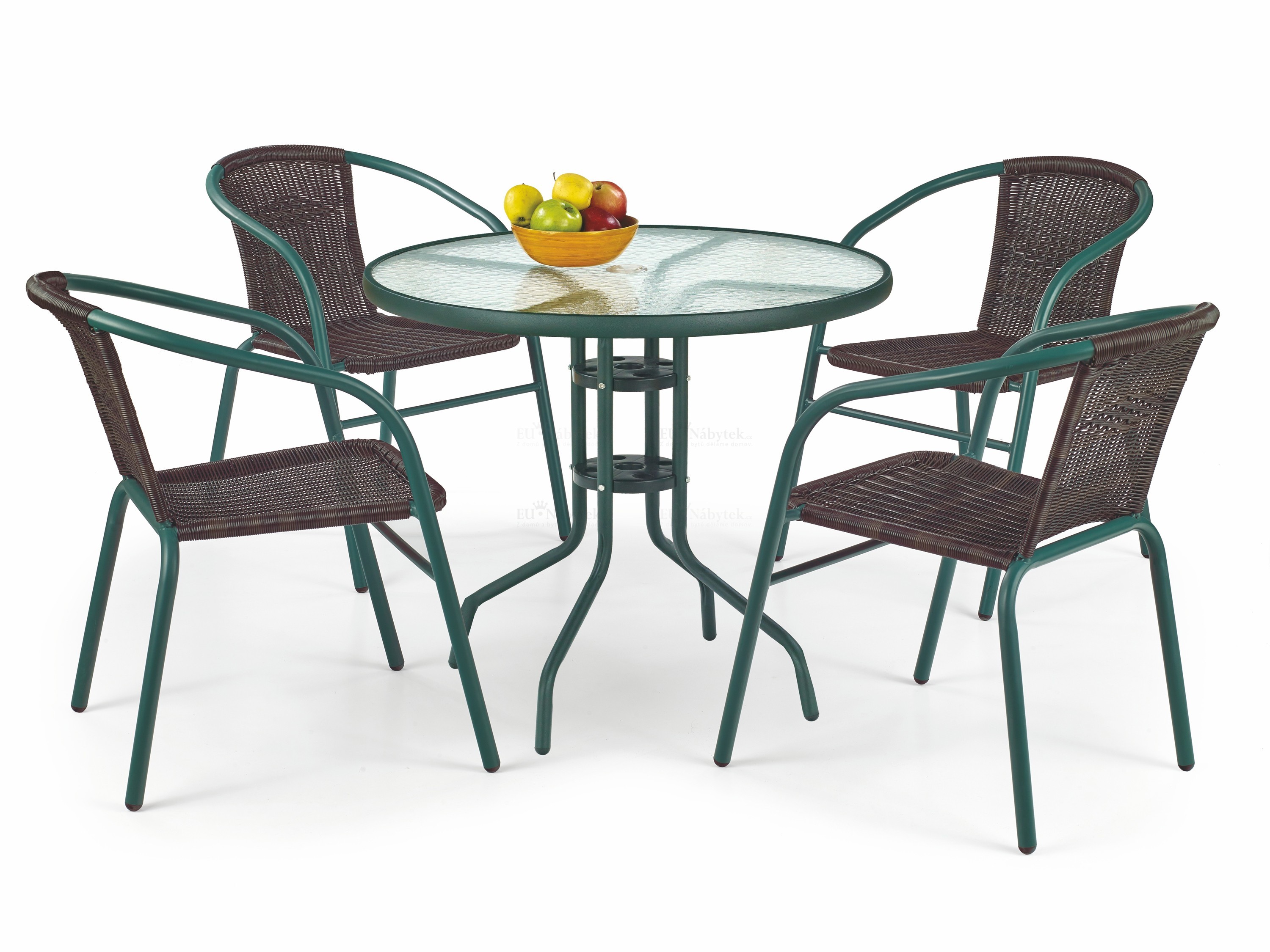Materiál: sklo / práškovaná ocel, barva: tmavě zelená. Židle nejsou v ceně.