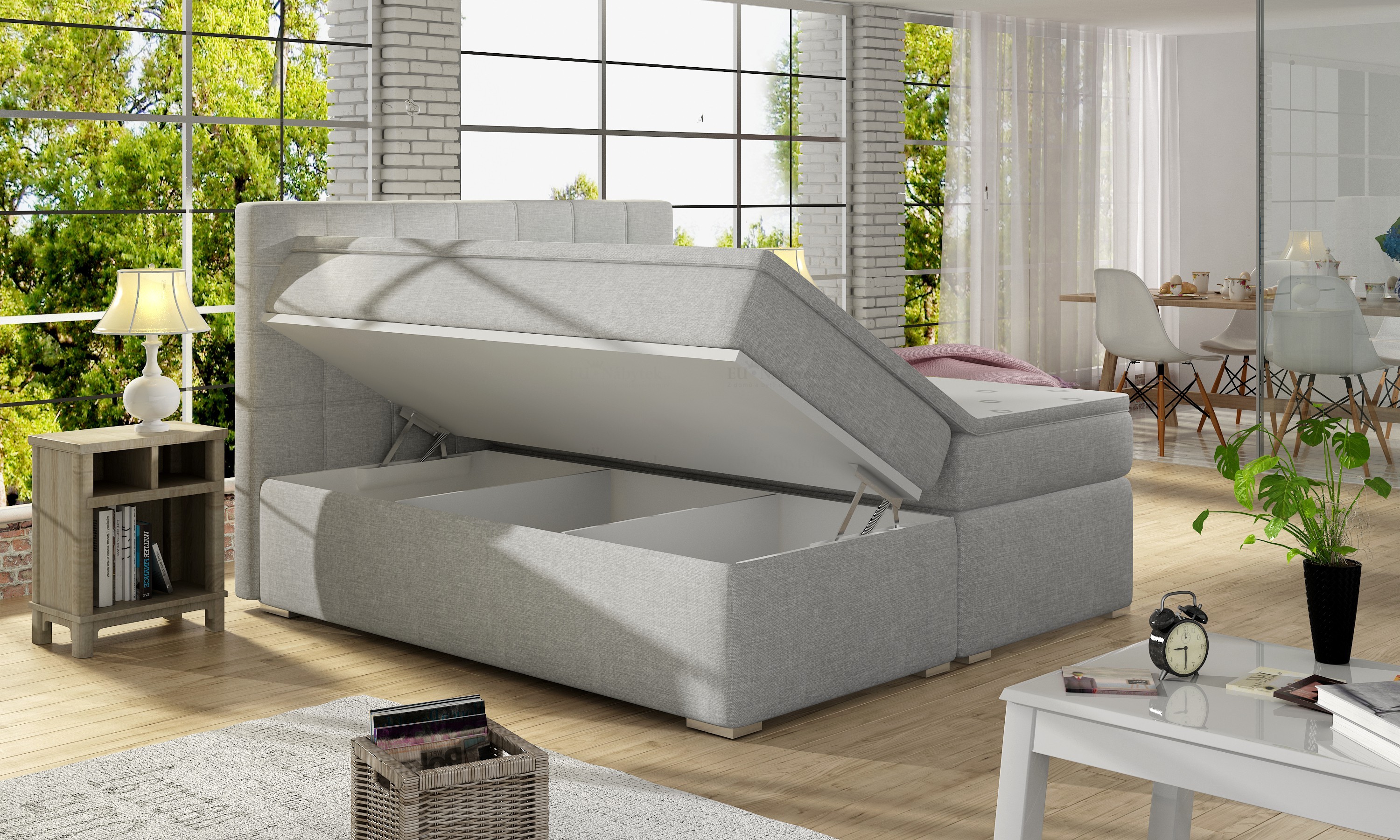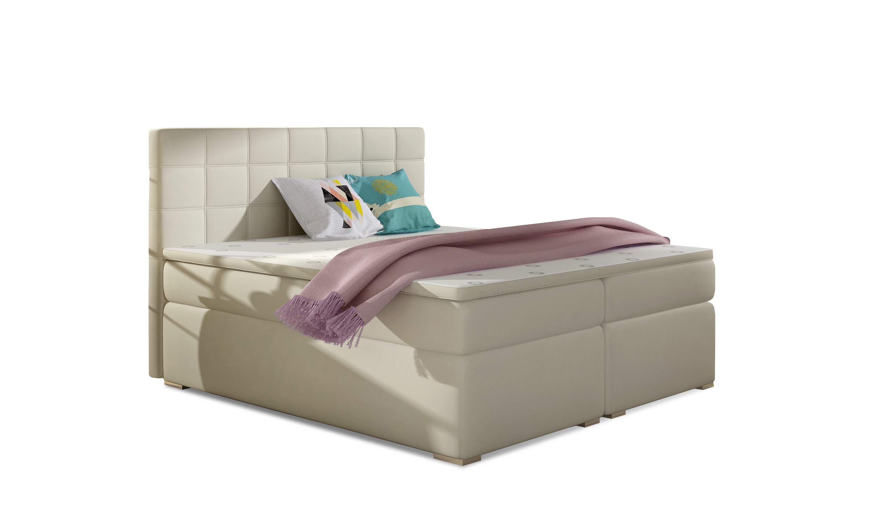 Kontinentální postel BOXSPRING vyniká svým jedinečným vzhledem. Boxspring je postelový systém, který můžete znát ze zahraničí či luxusních hotelů. Tato postel je nejen specifická svým vysokým násedem, ale hlavně díky svému složení odlišná od klasických postelí. Základním prvkem této postele Boxspring je spodní 21 cm pružinová matrace v rámu, která slouží jako ortopedický a ventilační podklad horní vyrovnávací tenké matrace - topperu. Toto spojení garantuje spokojenost jak z hlediska hygienického, tak i ortopedického a relaxačního. Dodávano v demontu. Tkanina Soft 017.