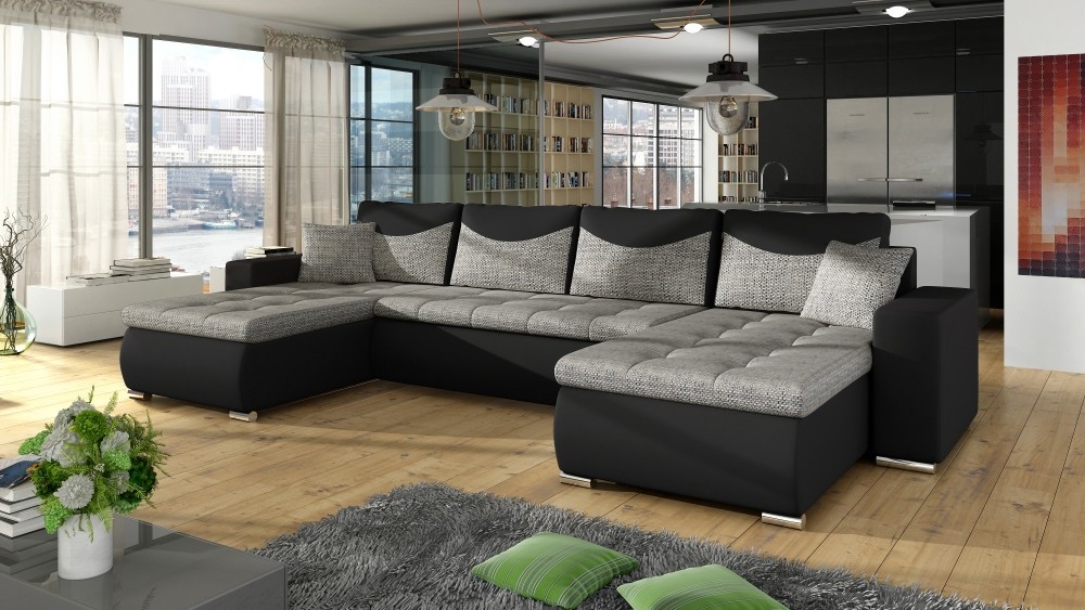 Praktická celočalouněná rohová sedačka DANIELA, která zapadne do každého interiéru. Netradiční a velmi moderní vzhled. Sedačka obsahuje praktický úložný prostor a prostor na příležitostné spaní. Po rozložení je spací plocha 132x292 cm. Při rozkladu se sedák nadzvedne a přesune dopředu, zadní část se sklopí do vodorovné polohy a polštáře oddělají. Výška polštářů je 40cm. Čalouněná je látkou Berlin 01 a ekokůží Madryt 1100.