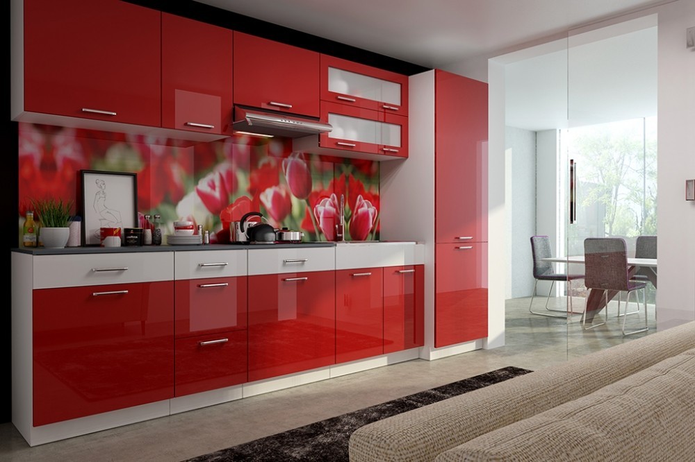 Luxusní kuchyně vhodná i do panelákových bytů. Tato kuchyně je navržena tak, že skříňky se dají poskládat v libovolném pořadí. To vám umožní si sestavit kuchyni podle svých představ. Pracovní deska je v ceně v barvě grafit, která je dodávána vcelku 160cm. Sokl i korpus jsou v bílé barvě. Sestava se skládá ze spodních skříněk - výška 82, hloubka 45, šířka 60/40/60/80 cm, potravinová skříň výška 201 cm, hloubka 55 cm, šířka 60 cm a vrchních skříněk - výška 58, hloubka 30, šířka 60/40/60/80 cm. Úchyty jsou plastové a mají šedou barvu. Spotřebiče, dřez a digestoř v ceně nejsou. Kuchyň nabízíme také v dalších barevných variantách - dole na této stránce. Možnost doobjednání dřezu. Dodáváme v demontovaném stavu. Dvířka i dekorační pruh jsou v lesku, níže si prosím zvolte barvu.