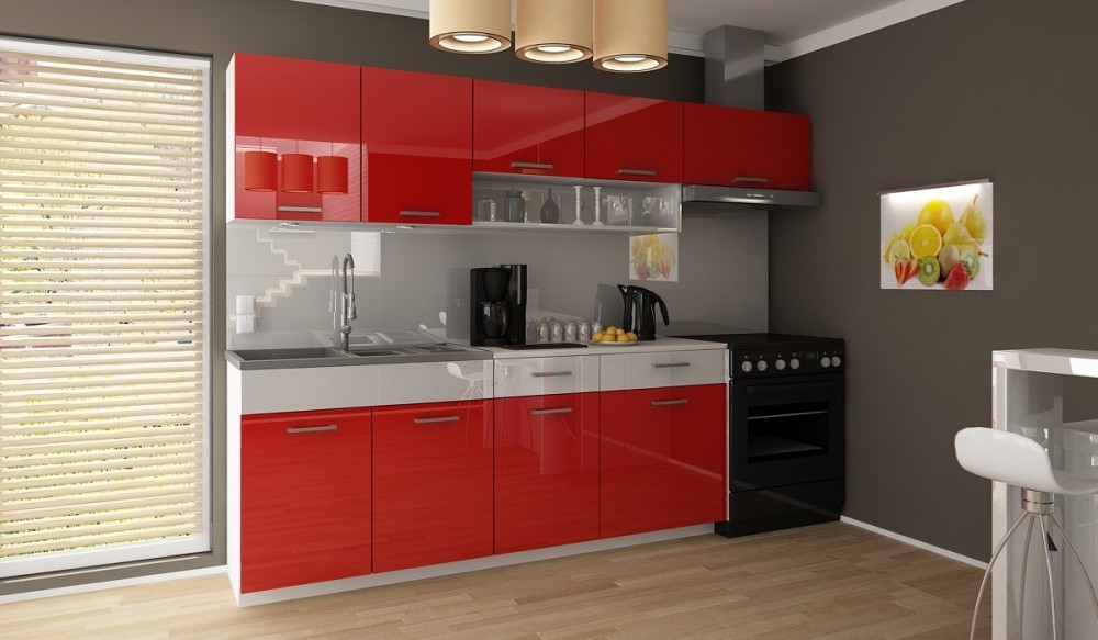 Luxusní kuchyně vhodná i do panelákových bytů. Tato kuchyně je navržena tak, že skříňky se dají poskládat v libovolném pořadí. To vám umožní si sestavit kuchyni podle svých představ. Pracovní deska je v ceně v barvě grafit, která je dodávána vcelku 100cm (kromě skříňky na dřez). Sokl i korpus jsou v bílé barvě. Sestava se skládá ze spodních skříněk - výška 82, hloubka 45, šířka 80/40/60 cm a vrchních skříněk - výška 58, hloubka 30, šířka 80/100/60 cm. Úchyty jsou plastové a mají šedou barvu. Spotřebiče, dřez a digestoř v ceně nejsou. Kuchyň nabízíme také v dalších barevných variantách - dole na této stránce. Možnost doobjednání dřezu. Dodáváme v demontovaném stavu. Dvířka i dekorační pruh jsou v lesku, níže si prosím zvolte barvu.