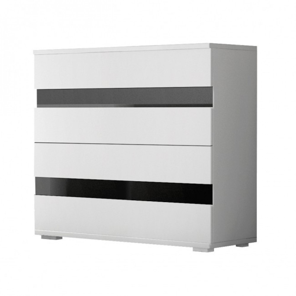 Komoda Lucka v barevném provedení bilá/černý lesk. Nábytek je vytoben z kvalitní laminátové dřevotřísky. Nábytek nejvyšší kvality v souladu s nejnovějšími trendy v designu. Dodávano v demontu.