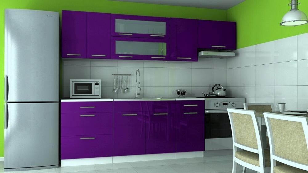 Moderní kuchyňská linka Diamond je v provedení vysokého lesku o celkovém rozměru 180 cm (spodní skříňky) / 240 cm (horní skříňky). Tato luxusní kuchyně je vhodná jak do panelákových bytů, tak do rodinných domů. Jednotlivé skříňky jsou vyrobeny tak, že si je můžete sestavit a seskládat libovolně. Součástí kuchyně je také pracovní deska ve velmi moderní a praktické barvě grafit a která je dodávána vcelku 100cm (nad dřezovou skříňku se pracovní deska nedodává). Sokl a korpusy skříněk jsou v bílé barvě. Úchyty jsou plastové v šedém barevném provedení. Skříňky jsou vyrobeny z foliované MDF ve vysokém lesku. Zboží je dodáváno bez vyobrazených dekorací, dřezu a spotřebičů.