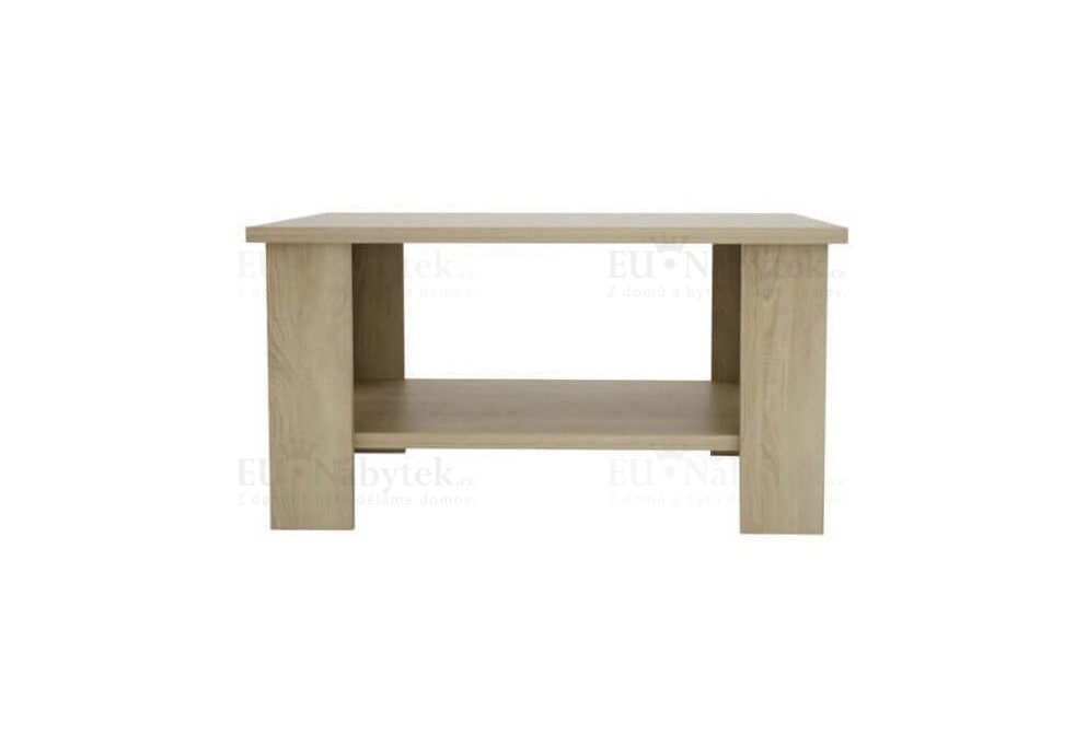 Konferenční stolek Hana je velmi jednoduchý, ve spodní části odkládací prostor ve velikosti stolku. Oddělená spodní police na časopisy, noviny, či jiné věci pomáhá udržovat pořádek a uvolní tak místo na stole.Materiálem je kvalitní lamino deska tl. 16 mm, zakončená hranou z dýhy ABS. Dodávano v demontu.
