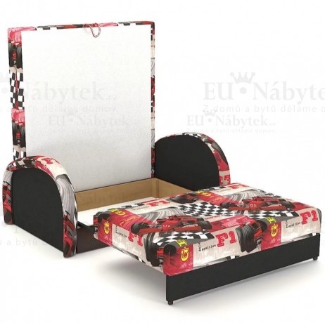 Krásné rozkládací křeslo KAJA v designovém potahu s formulemi. Křeslo má rozměry 126 x 95 x 84 cm a po rozložení získáte spací plochu o rozměru 195 x 110 cm, což umožňuje pohodlné vyspání. Výhodou je i praktický úložný prostor pro úschovu potřebných věcí. Kvalitní sezení si dopřejete díky pružinám Faliste a vysokoelastické PUR pěně T25. Křeslo díky svému designu výborně zapadá do konceptu dětských nebo obývacích pokojů, které tak oživí. V nabídce i v jiném barevném provedení.