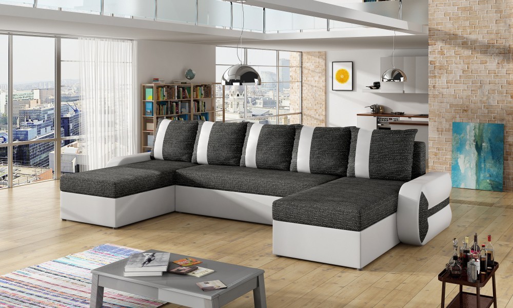 Praktická celočalouněná sedačka Rihana s velmi netradičním a velmi moderním vzhledem. Sedačka obsahuje úložný prostor a prostor pro příležitostné spaní. Po rozložení je spací plocha 278x115cm. Při rozkladu se sedák nadzvedne a přesune dopředu, zadní část se sklopí do vodorovné polohy a polštáře se odejmou. Sedačka je čalouněna látkou Berlin 01 a ekokůží Madryt 1100. V nabídce je spoustu dalších barevných variant.