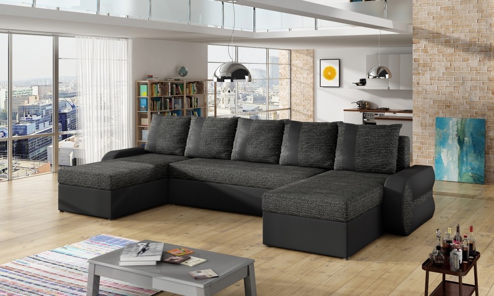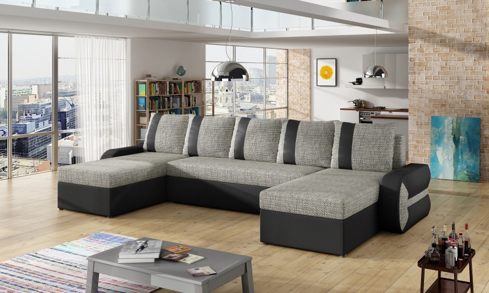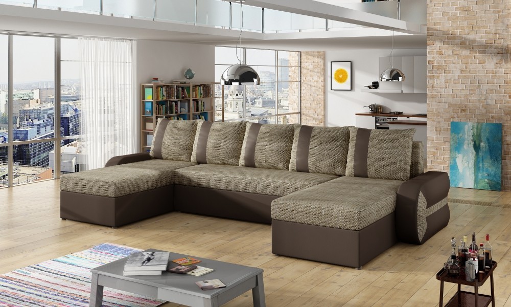 Praktická celočalouněná sedačka Rihana s velmi netradičním a velmi moderním vzhledem. Sedačka obsahuje úložný prostor a prostor pro příležitostné spaní. Po rozložení je spací plocha 278x115cm. Při rozkladu se sedák nadzvedne a přesune dopředu, zadní část se sklopí do vodorovné polohy a polštáře se odejmou. Sedačka je čalouněna látkou Berlin 03 a ekokůží Madryt 128. V nabídce je spoustu dalších barevných variant.