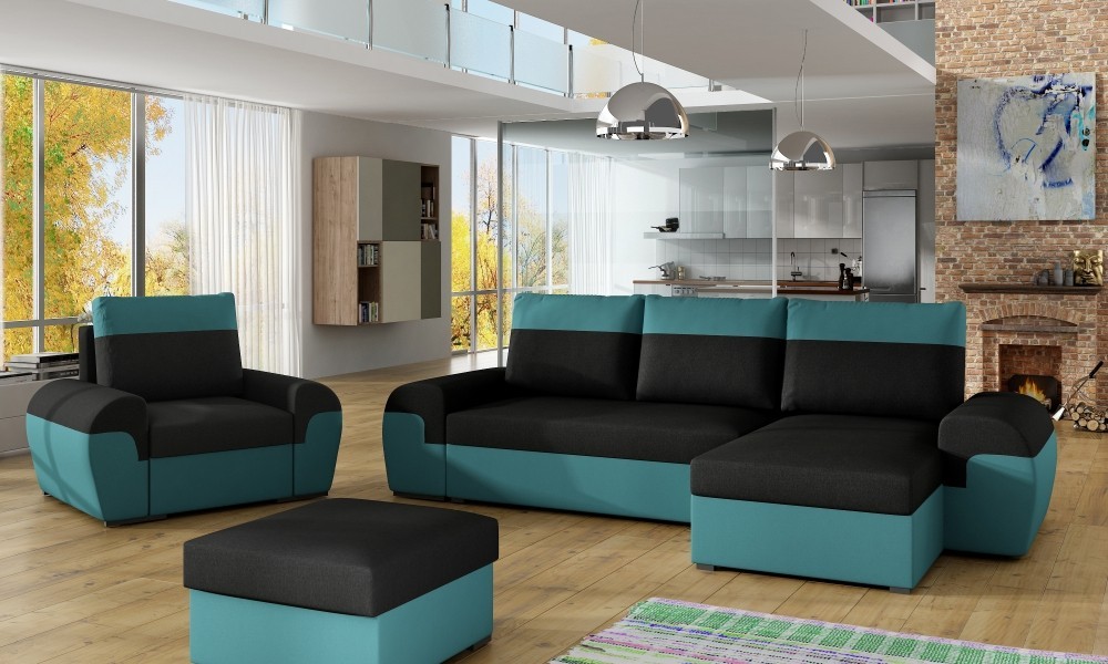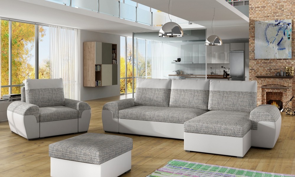 Praktická rozkládací rohová sedačka DORI+křeslo+taburet, které zapadne do každého interiéru. Sedačka je univerzální, roh lze smontovat na pravý i levý. Sedací souprava DORI díky vysokoelastické PUR pěně poskytuje pohodlné sezení. Po rozložení vznikne plocha pro příležitostné spaní 113x203cm. Sedačka a taburet obsahují praktické úložné prostory. Získáte tak spoustu místa pro uložení potřebných věcí. Potahy polštářů jsou na zip a díky tomu snímatelné. Potahová látka Sawana 14 a Neo 27. V nabídce i v jiném barevném provedení.