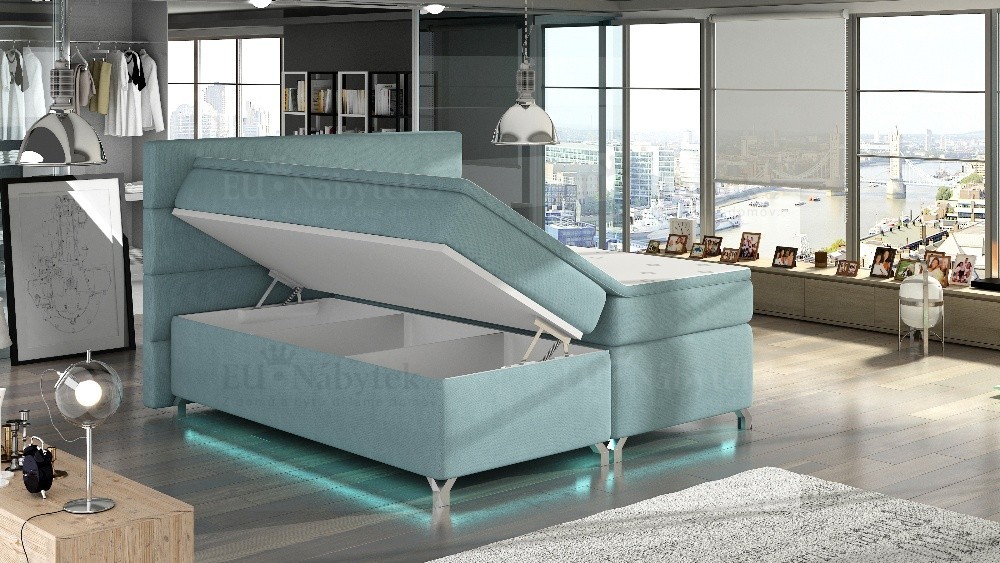 Kontinentální postel BOXSPRING vyniká svým jedinečným vzhledem. Boxspring je postelový systém, který můžete znát ze zahraničí či luxusních hotelů. Tato postel je nejen specifická svým vysokým násedem, ale hlavně díky svému složení odlišná od klasických postelí. Základním prvkem této postele Boxspring je spodní 20 cm devíti zónová pružinová matrace v rámu, která slouží jako prevence ortopedických vad páteře a ventilační podklad horní vyrovnávací tenké matrace - topperu. Toto spojení garantuje spokojenost jak z hlediska hygienického, tak i ortopedického a relaxačního. Postel obsahuje úložný prostor (viz fotogalerie). Dodávano v demontu. Možnost dokoupení LED osvětlení na této stránce níže. Tkanina Ekokůže 66.