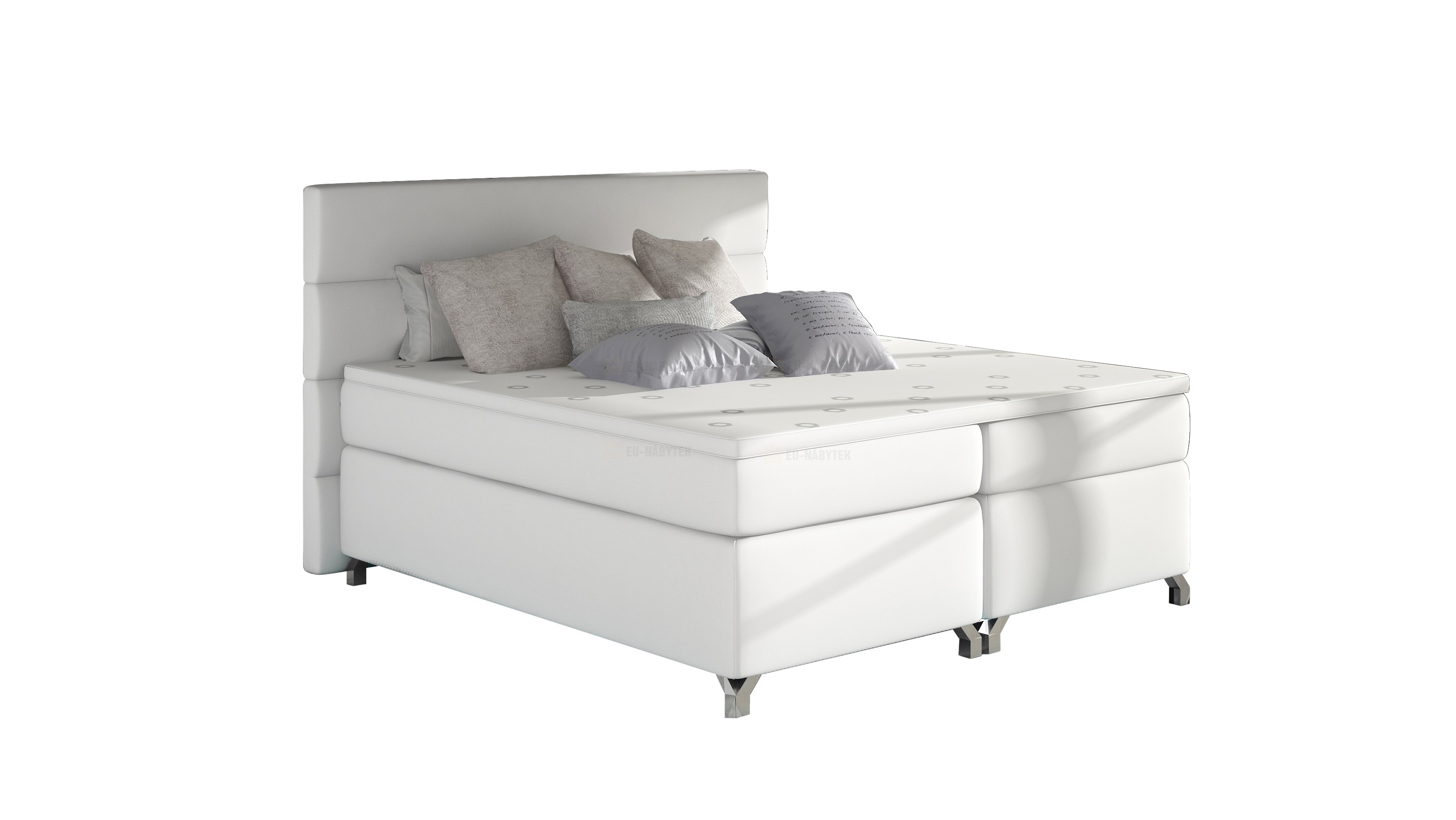 Kontinentální postel BOXSPRING vyniká svým jedinečným vzhledem. Boxspring je postelový systém, který můžete znát ze zahraničí či luxusních hotelů. Tato postel je nejen specifická svým vysokým násedem, ale hlavně díky svému složení odlišná od klasických postelí. Základním prvkem této postele Boxspring je spodní 20 cm devíti zónová pružinová matrace v rámu, která slouží jako prevence ortopedických vad páteře a ventilační podklad horní vyrovnávací tenké matrace - topperu. Toto spojení garantuje spokojenost jak z hlediska hygienického, tak i ortopedického a relaxačního. Postel obsahuje úložný prostor (viz fotogalerie). Dodávano v demontu. Možnost dokoupení LED osvětlení na této stránce níže. Ekokůže Soft 09.
