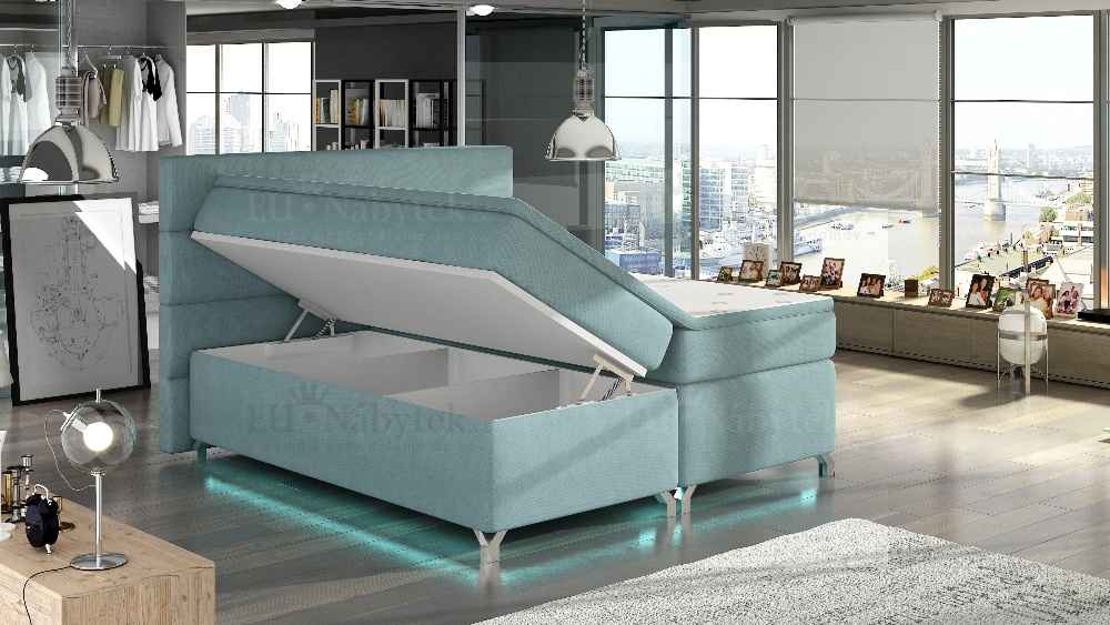 Kontinentální postel BOXSPRING vyniká svým jedinečným vzhledem. Boxspring je postelový systém, který můžete znát ze zahraničí či luxusních hotelů. Tato postel je nejen specifická svým vysokým násedem, ale hlavně díky svému složení odlišná od klasických postelí. Základním prvkem této postele Boxspring je spodní 20 cm devíti zónová pružinová matrace v rámu, která slouží jako prevence ortopedických vad páteře a ventilační podklad horní vyrovnávací tenké matrace - topperu. Toto spojení garantuje spokojenost jak z hlediska hygienického, tak i ortopedického a relaxačního. Postel obsahuje úložný prostor (viz fotogalerie). Dodávano v demontu. Možnost dokoupení LED osvětlení na této stránce níže. Ekokůže Soft 17.