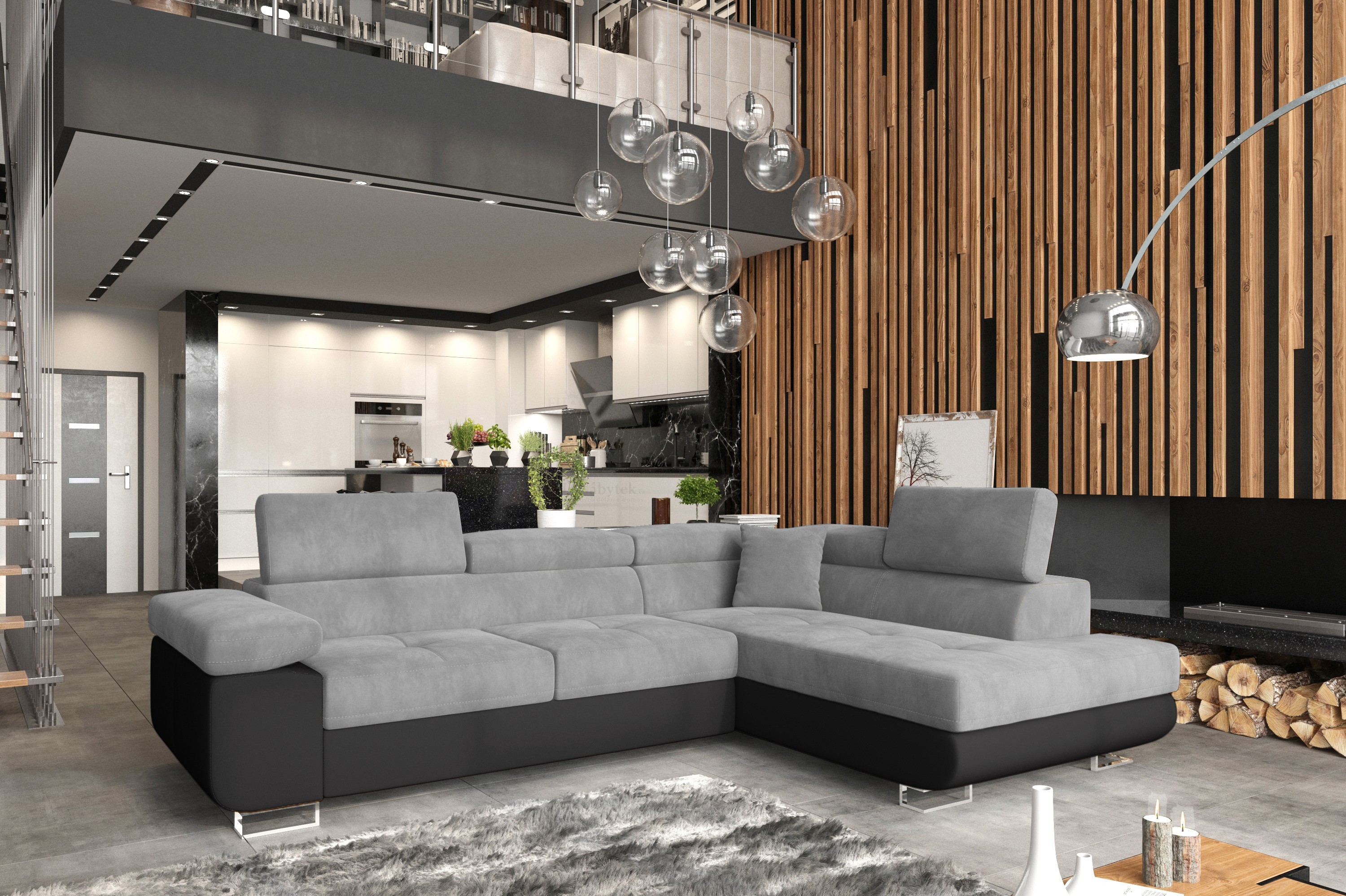 Rozkládací rohová sedačka TONY tmavě šedá / černá