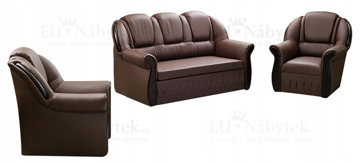 Pohodlná a prostorově nenáročná sedací souprava. Naše sedačka je originál. Po dlouhodobých zkušenostech z výroby a prodeje prošla mnoha inovacemi. Zesílená konstrukce. Nejkvalitnější PUR pěna T30, silnější pružiny Faliste. Moderní kvalitní sedací souprava LORDIE. Garantujeme vysokou kvalitu provedení a dlouhou životnost. Nový systém prošití vylučuje povolení a následné zvlnění potahové tkaniny. Tkanina vysoké kvality - na obrázku je provedení hnědá ekokůže Soft 66. Lze si vybrat z velké škály různých barevných kombinací. Sedací souprava má kvalitní systém rozkládání. Souprava se skládá ze dvou křesel a pohovky, která po rozložení disponuje spací plochou o rozměru 135x185cm.