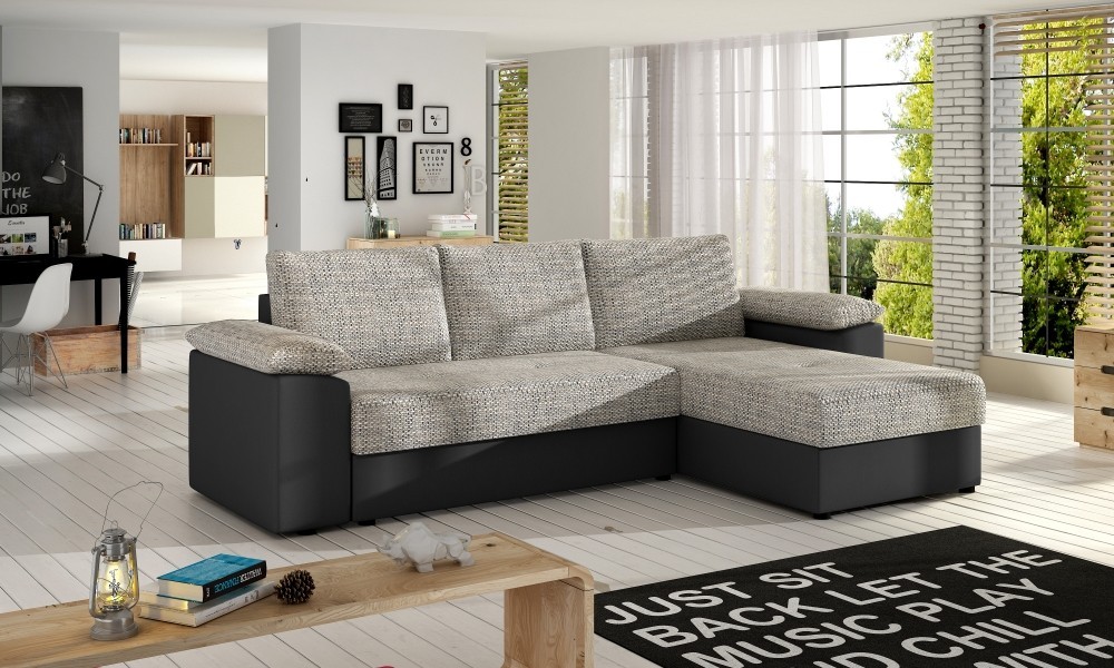 Rozkládací rohová sedačka DENVER L šedá melír / černá