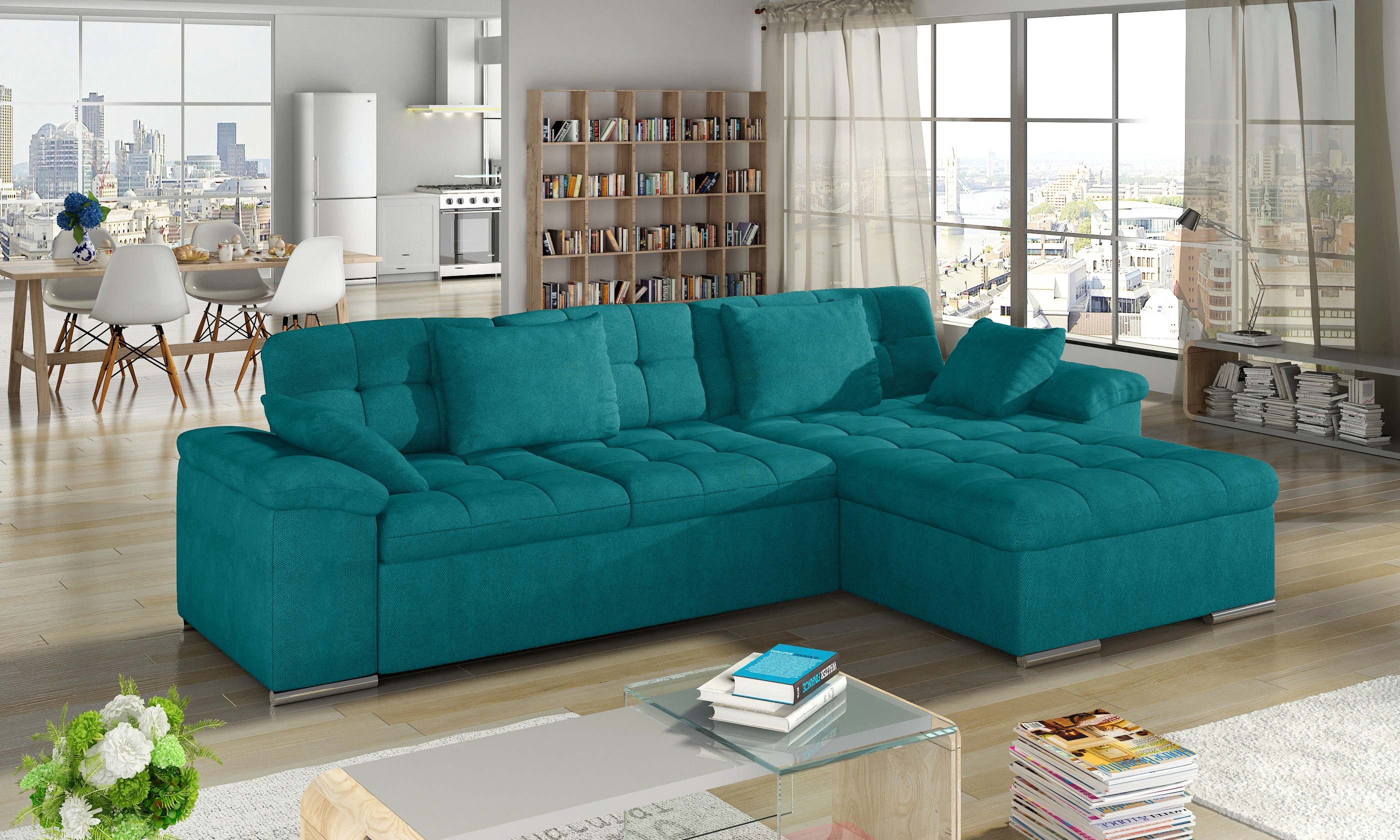 Sedací souprava MIA je ideální pro ty, kteří ocení komfort a pohodlí. Tkanina vysoké kvality, masivní pevná kostra, s kvalitní PUR pěnou T30 zaručují komfortní posezení. Plocha po rozložení 130x228 cm. Sedací souprava má také praktický úložný prostor. Nožky jsou z kovu, délka je 10cm. Barevné provedení - Inari 91 a ekokůže Madryt 195. V nabídce i v jiném barevném provedení včetně taburetu ve stejných látkách.