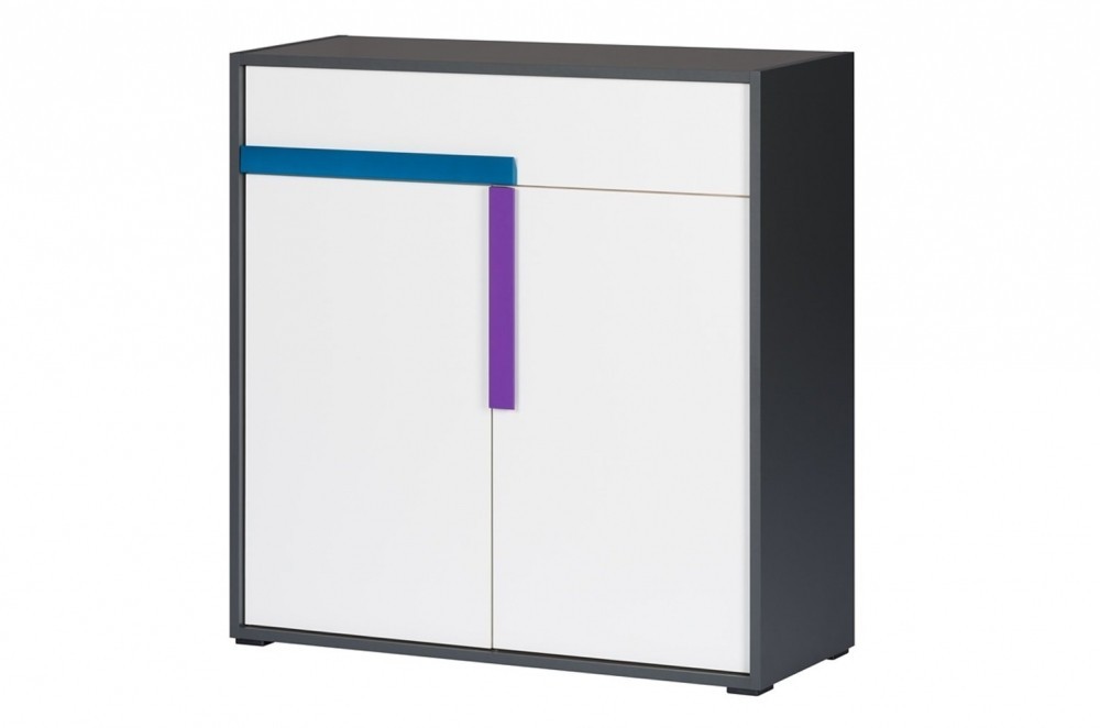 Komoda Ikaros je vyrobena z kvalitní laminátové desky, která se vyznačuje zejména svou odolností a snadnou údržbou. Nábytek je v barevném provedení bílá / grafit / borovice avola. Disponuje dvojicí dvířek a jednou zásuvkou. Dodáváno v demontu. V ceně nejsou barevné úchyty!