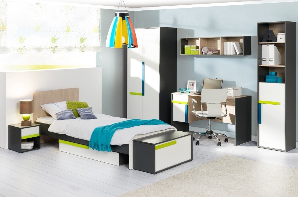 Postel Ikaros je vyrobena z kvalitní laminátové desky, která se vyznačuje zejména svou odolností a snadnou údržbou. Rozměry postele jsou 95x86x205cm, plocha na spaní je 90x200cm. Nábytek je v barevném provedení bílá / grafit / borovice avola. Postel neobsahuje rošt ani matraci. Dodáváno v demontu.