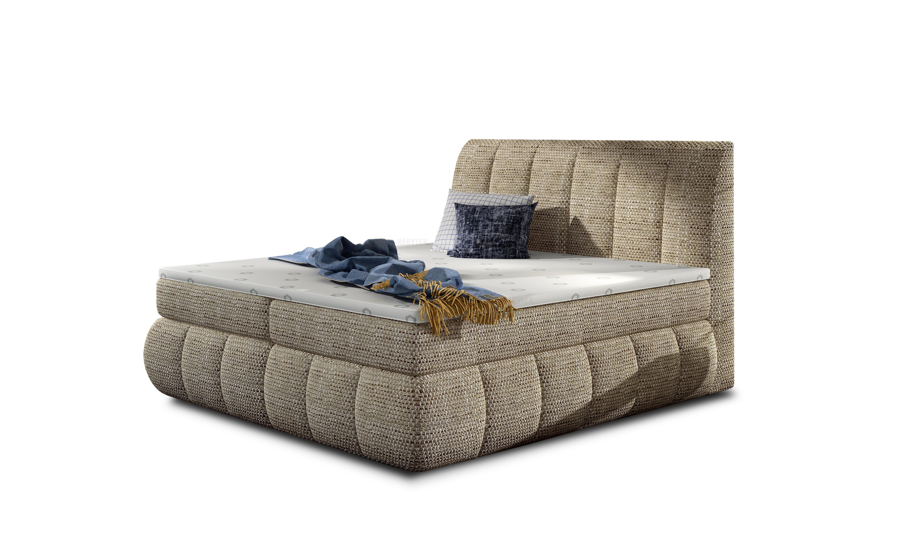 Kontinentální postel BOXSPRING vyniká svým jedinečným vzhledem. Boxspring je postelový systém, který můžete znát ze zahraničí či luxusních hotelů. Tato postel je nejen specifická svým vysokým násedem, ale hlavně díky svému složení odlišná od klasických postelí. Základním prvkem této postele Boxspring je spodní 20 cm devíti zónová pružinová matrace, která slouží jako prevence ortopedických vad páteře a ventilační podklad horní vyrovnávací tenké matrace - topperu. Toto spojení garantuje spokojenost jak z hlediska hygienického, tak i ortopedického a relaxačního. Postel obsahuje úložný prostor (viz fotogalerie). Dodávano v demontu. Tkanina Sawana 05.