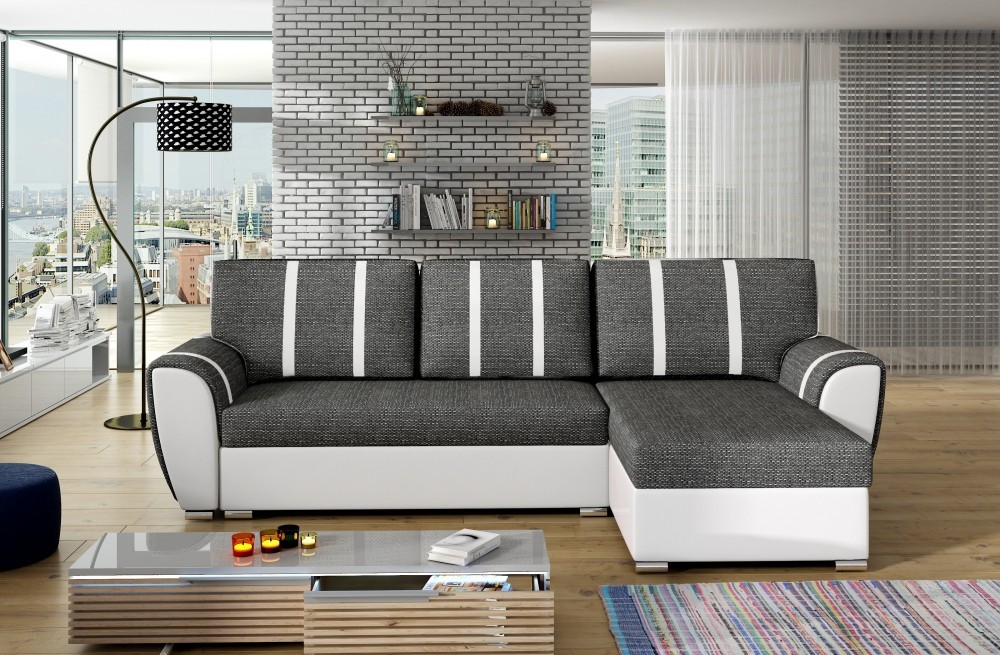 Praktická rozkládací rohová sedačka NAOMI, která disponuje dvěmi úložnými prostory. Naleznete je v prostřední části po rozložení a v bočním otomanu. Pohodlné sezení zaručují pružiny Faliste spolu s PUR pěnou T30. Spací plocha je 118x204cm. Sedačka zaujme především svým designem polštářů. Čalouněná je potahovou látkou Berlin 03 a Sawana 26. Výrobce ji však nabízí v několika dalších barevných kombinacích.