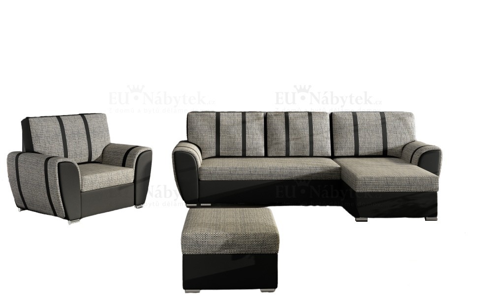 Praktická rozkládací sestava NAOMI, která disponuje spoustou úložného prostoru. Sestava se skládá z praktického křesla, taburetu a sedačky, která je univerzální. Roh lze tedy smontovat na pravou i levou stranu. Po rozložení vznikne plocha pro příležitostné spaní o rozměru 118 x 204 cm. Pohodlné sezení zaručují pružiny Faliste spolu s PUR pěnou T30. Čalouněná je potahovou látkou Berlin 03 a Sawana 26. Výrobce ji však nabízí v několika dalších barevných kombinacích.