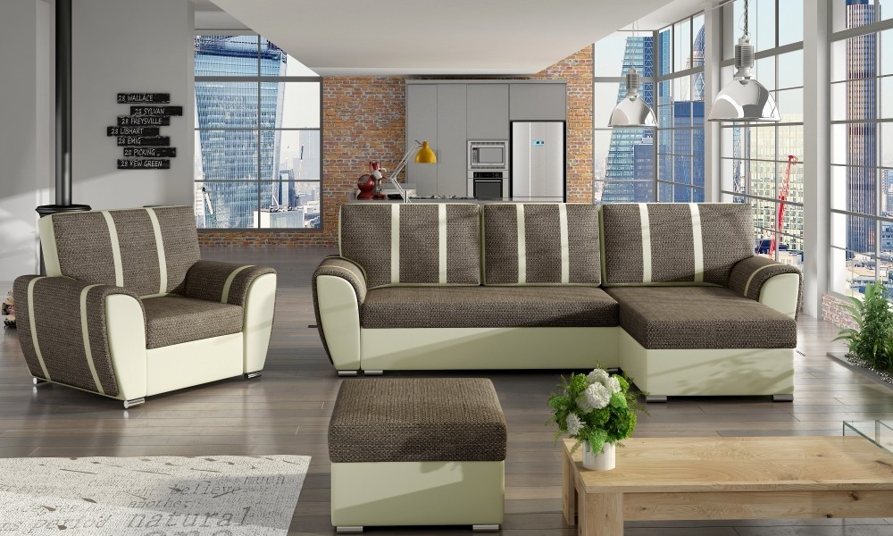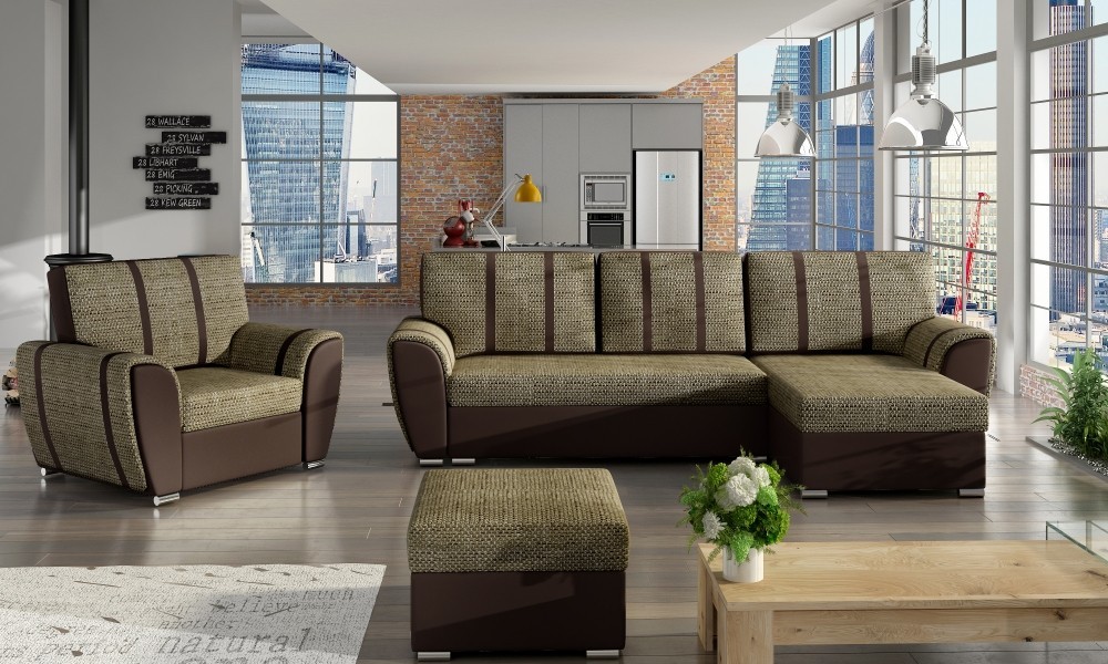 Praktická rozkládací sestava NAOMI, která disponuje spoustou úložného prostoru. Sestava se skládá z praktického křesla, taburetu a sedačky, která je univerzální. Roh lze tedy smontovat na pravou i levou stranu. Po rozložení vznikne plocha pro příležitostné spaní o rozměru 118 x 204 cm. Pohodlné sezení zaručují pružiny Faliste spolu s PUR pěnou T30. Čalouněná je potahovou látkou Berlin 03 a Sawana 26. Výrobce ji však nabízí v několika dalších barevných kombinacích.