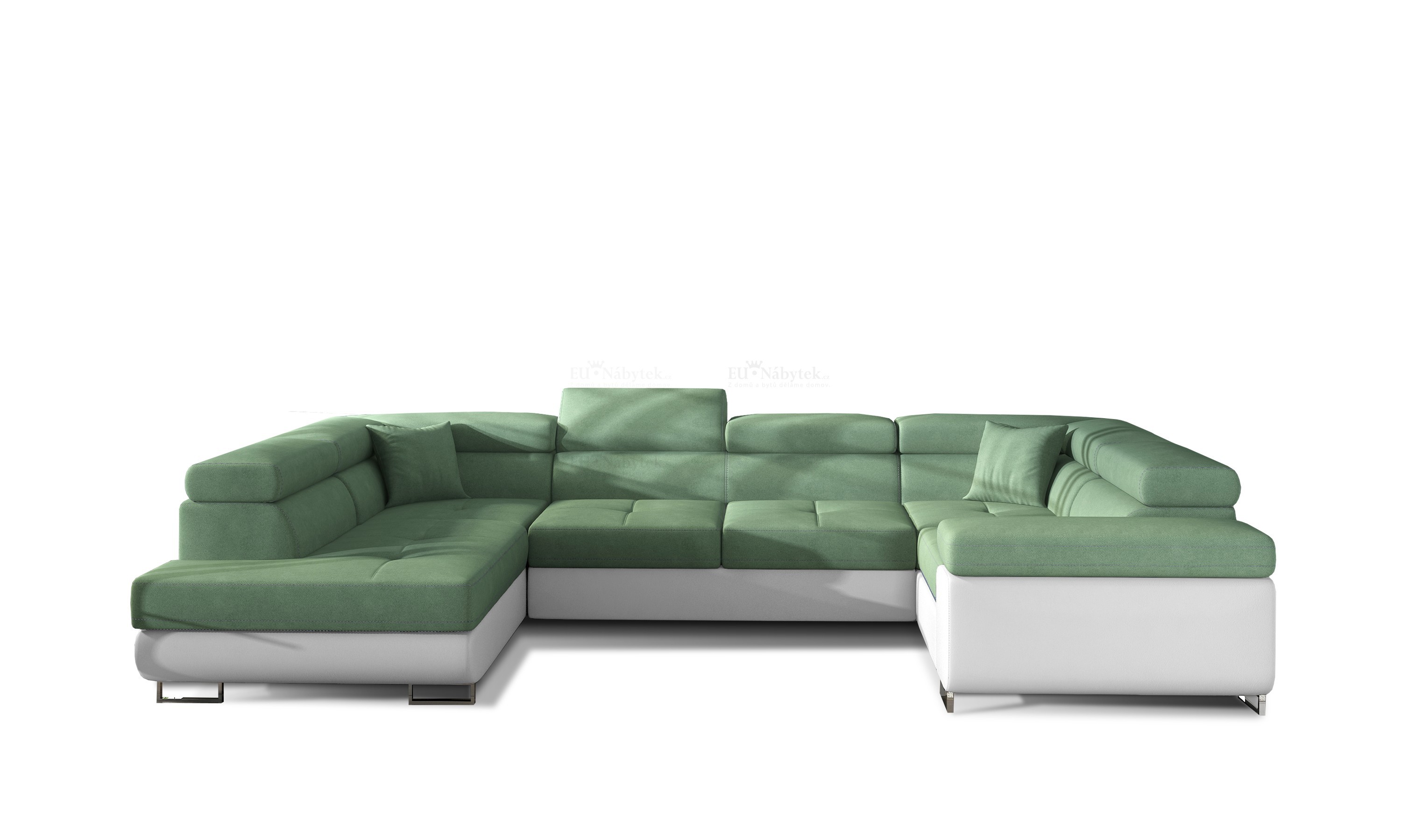Luxusní nadčacová sedací souprava Jared díky pružinovému jádru Faliste spolu s kvalitní PUR T30 tvoří vnitřní komplex sedačky a zajistí to největší pohodlí jak při sezení, tak při ležení. Díky prostornému rozložení o rozměru 125x253cm si dopřejete ten nejpohodlnější odpočinek. Praktické polohovatelné záhlavníky a designové kovové nožky. Kombinace béžové látky Berlin 01 a ekokůže Soft 11. V nabídce i v jiném barevném provedení. Vyberte si tak tu, která Vám bude nejlépe ladit se zbytkem interiéru. Na hlavní fotce je pravý roh.