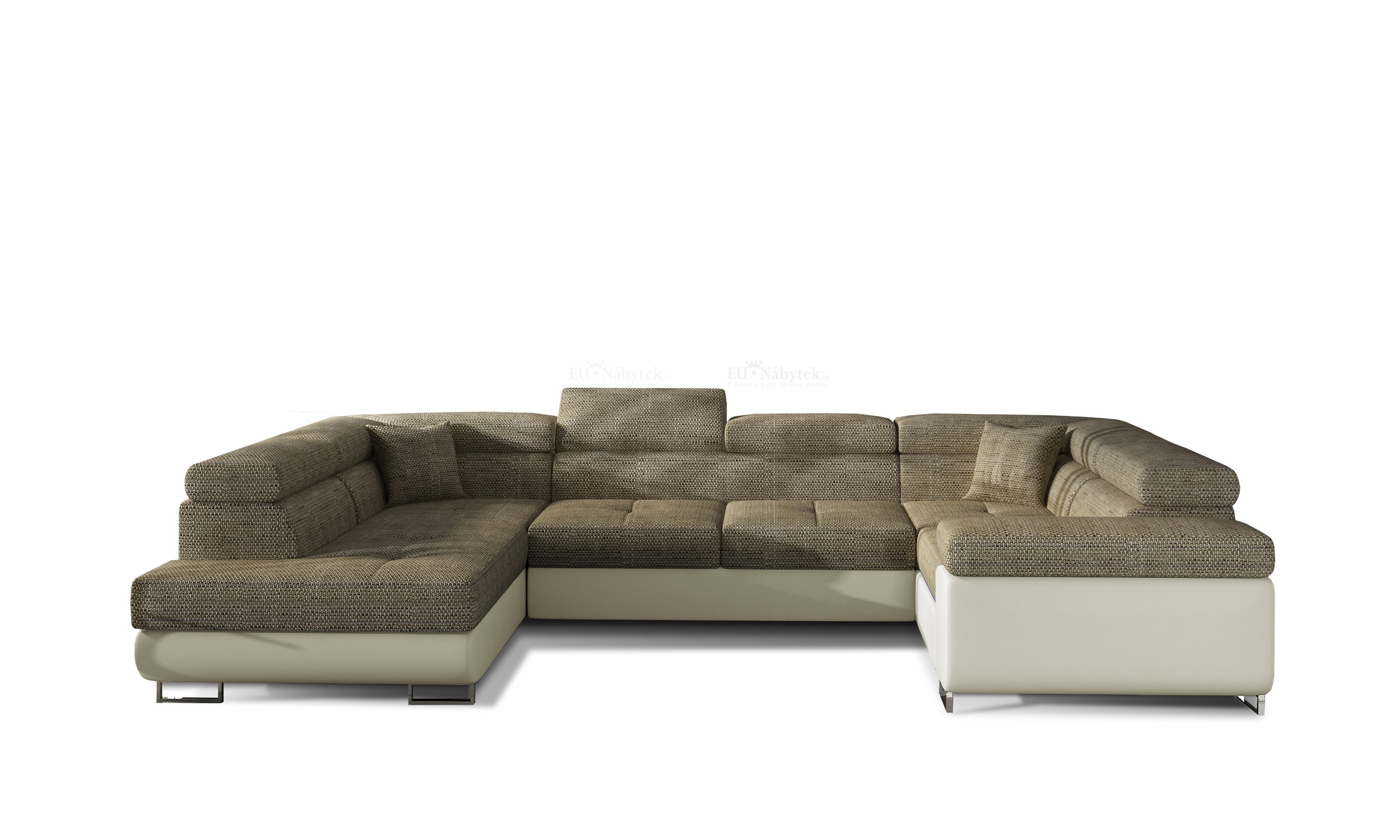 Luxusní nadčacová sedací souprava Jared díky pružinovému jádru Faliste spolu s kvalitní PUR T30 tvoří vnitřní komplex sedačky a zajistí to největší pohodlí jak při sezení, tak při ležení. Díky prostornému rozložení o rozměru 125x253cm si dopřejete ten nejpohodlnější odpočinek. Praktické polohovatelné záhlavníky a designové kovové nožky. Kombinace béžové látky Soro 83 a ekokůže Soft 29. V nabídce i v jiném barevném provedení. Vyberte si tak tu, která Vám bude nejlépe ladit se zbytkem interiéru. Na hlavní fotce je pravý roh.