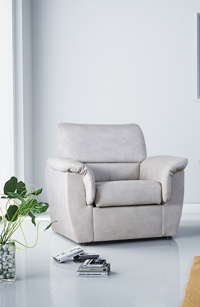 Luxusní křeslo DITA. Pohodlné sezení zaručují pružiny typu faliste spolu s PUR pěnou. Výška sedu je 45 cm a hloubka sedu je 58 cm. Úložný prostor se nachází pod sedákem. Nožky jsou z plastu. Látka křesla Largo 12. Křeslo můžete zakoupit i v jiném barevném provedení a také jako sestavu.