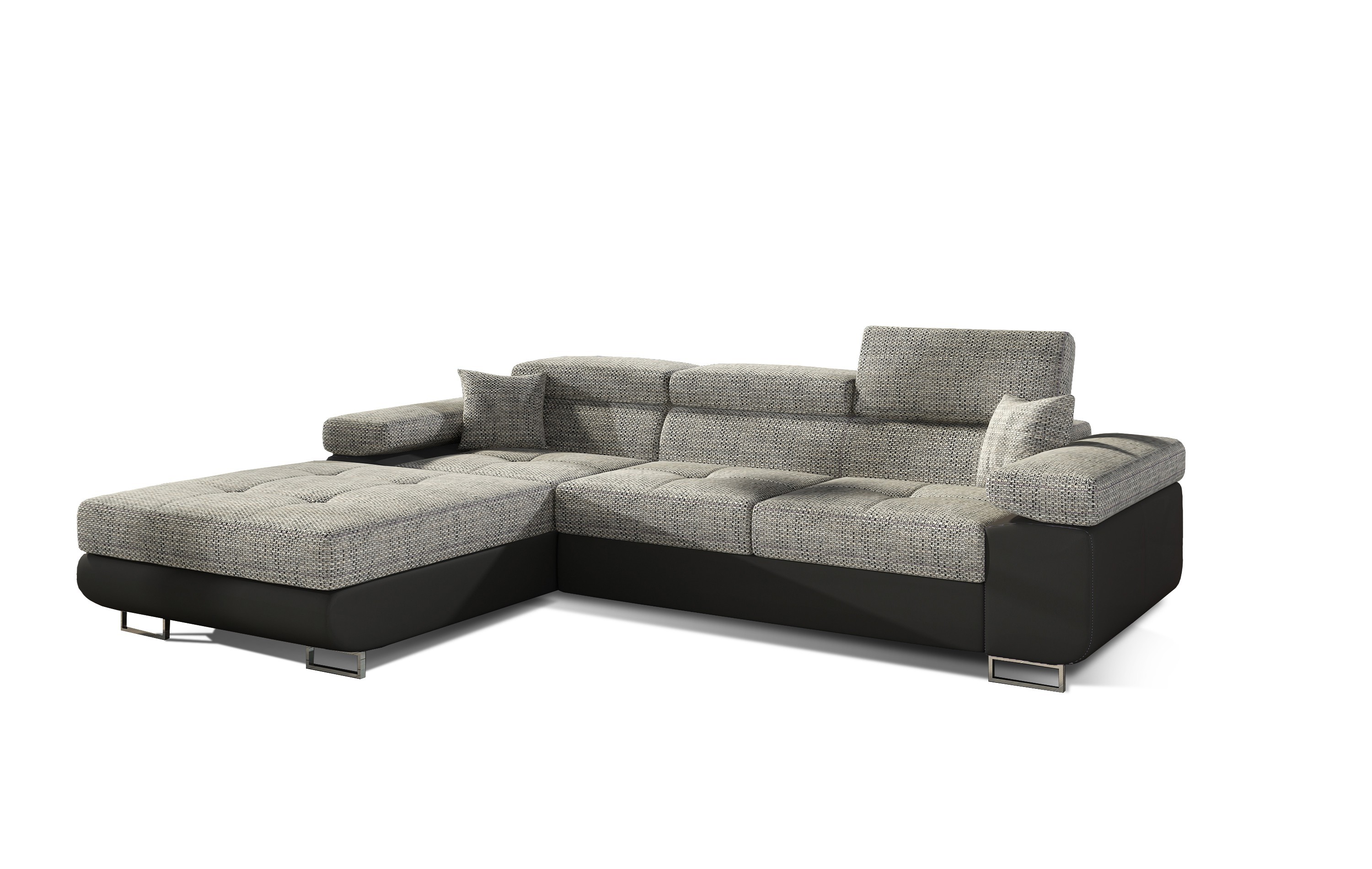 Sedací souprava ARMANI je ideální pro ty, kteří ocení komfort a pohodlí. Tkanina vysoké kvality, masivní pevná kostra, pružinové jádro Faliste s kvalitní PUR pěnou T30 zaručují komfortní posezení. Plocha po rozložení je o rozměru 198x125 cm. Sedací souprava má také praktický úložný prostor. Velkou předností této sedačky jsou polohovatelné záhlavníky, díky kterým si dopřerejete pohodlný odpočinek. Je čalouněná šedou látkou Berlin 01 a černou ekokůží Soft 11. V nabídce i jiné barevné kombinace.