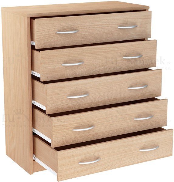 Komoda je vyrobena z kvalitní LTD. Úchyty jsou plastové ve stříbrné barvě. V nabídce v několika barevných provedeních. Hodí se jak do bytových tak kancelářských prostorů. Dodávano v demontu.