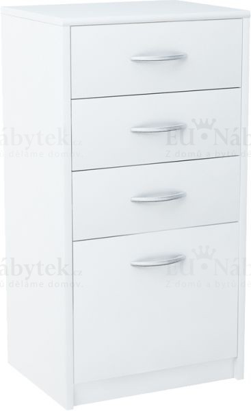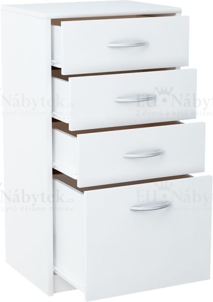 Komoda je vyrobena z kvalitní LTD. Úchyty jsou plastové ve stříbrné barvě. V nabídce v několika barevných provedeních. Hodí se jak do bytových tak kancelářských prostorů. Dodávano v demontu.