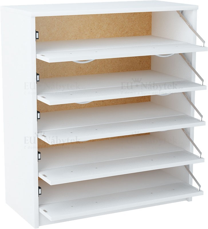 Výklopný botník JULIUS je vyroben z kvalitní LTD. Skládá se z 5 dvířek s úložným prostorem. Úchyty jsou plastové ve stříbrné barvě. . Svou jednoduchostí se bude svěle hodit jak do bytových tak kancelářských prostorů. Dodávano v demontu.