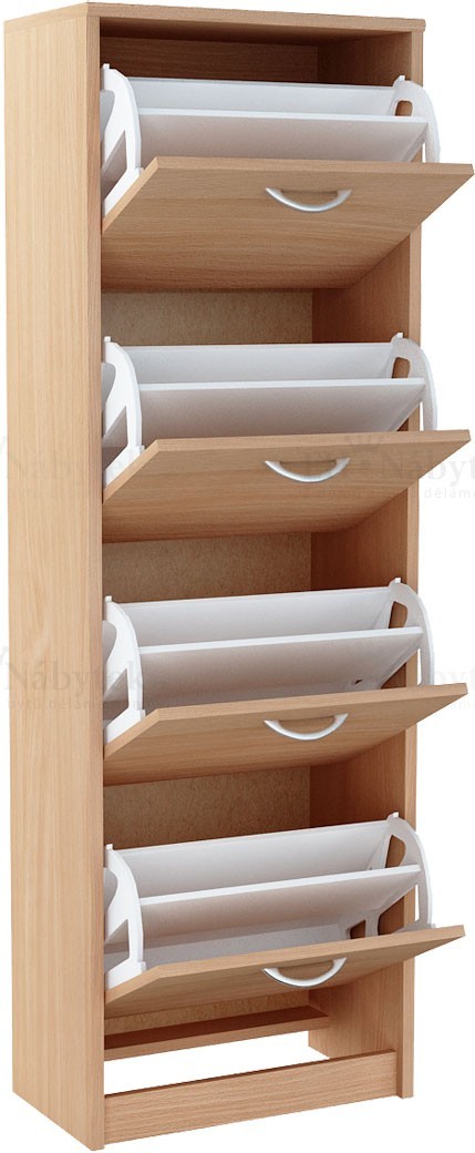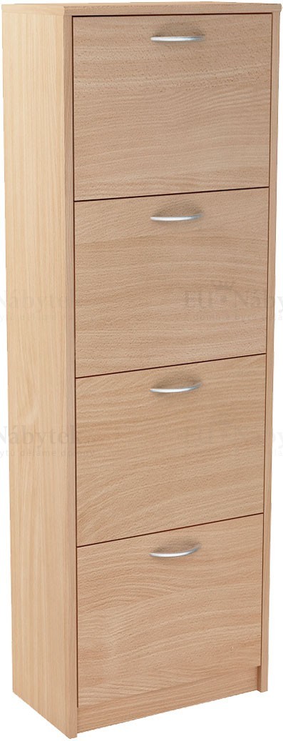 Výklopný botník BORIS je vyroben z kvalitní LTD. Skládá se z 4 dvířek s úložným prostorem. Úchyty jsou plastové ve stříbrné barvě. V nabídce v několika barevných provedeních. Svou jednoduchostí se bude svěle hodit jak do bytových tak kancelářských prostorů. Dodávano v demontu.