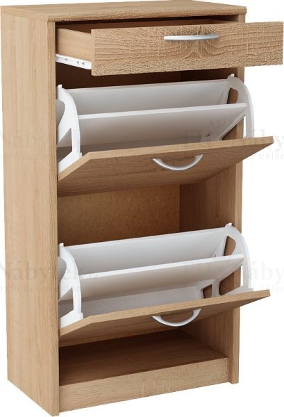 Výklopný botník BORIS je vyroben z kvalitní LTD. Skládá se z 3 dvířek s úložným prostorem. Úchyty jsou plastové ve stříbrné barvě. V nabídce v několika barevných provedeních. Svou jednoduchostí se bude svěle hodit jak do bytových tak kancelářských prostorů. Dodávano v demontu.