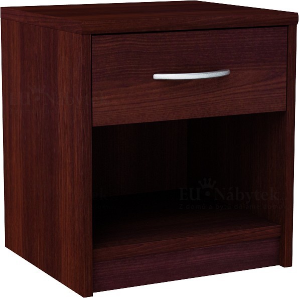 Noční stolek, který se bude hodit do každé ložnice díky své jednoduchosti. Rozměry jsou: šířka 38,8cm/výška 45cm/hloubka 35cm. Výška otevřeného prostoru je 20,6cm. Stolek se skládá z jednoho šuplíku. Stolek nabízíme ve více barvách. Další kombinace naleznete níže na stránce. Dodáváme v demontu.