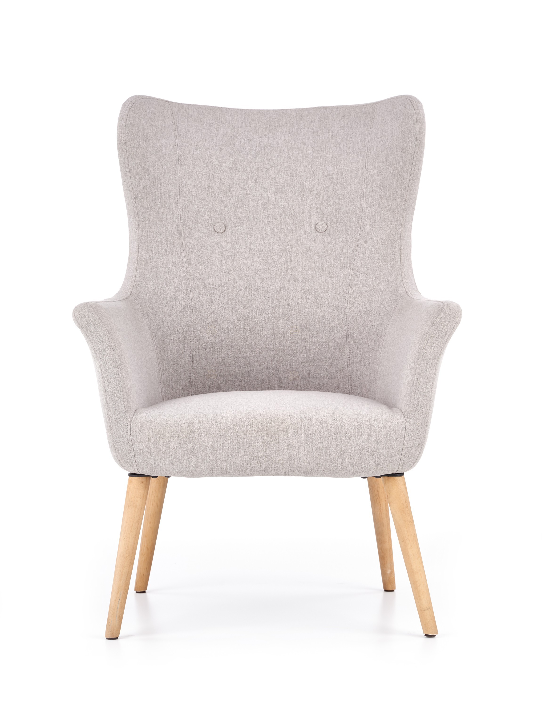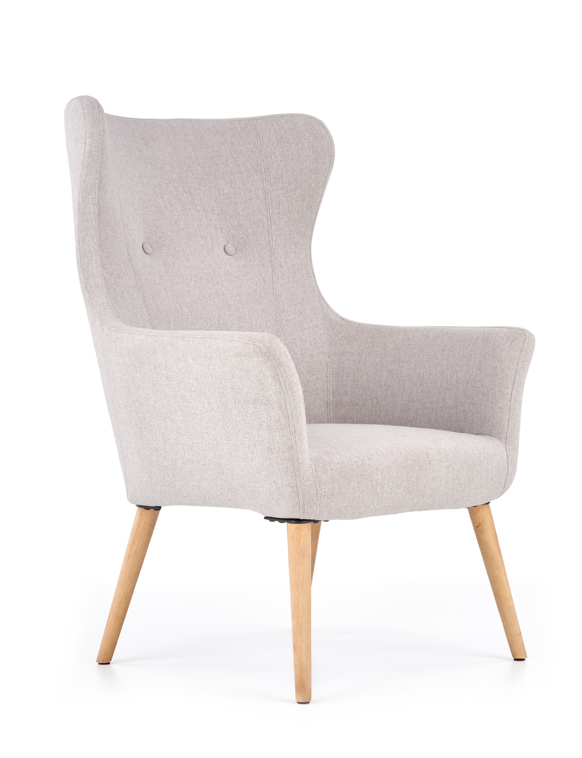 Křeslo o rozměrech 73/76/99/43cm. Čalouněné je šedou látkou. Nohy jsou z masivního přírodního dřeva. Velmi praktické křeslo s vysokou zadní opěrkou. V nabídce i v jiném barevném provedení.