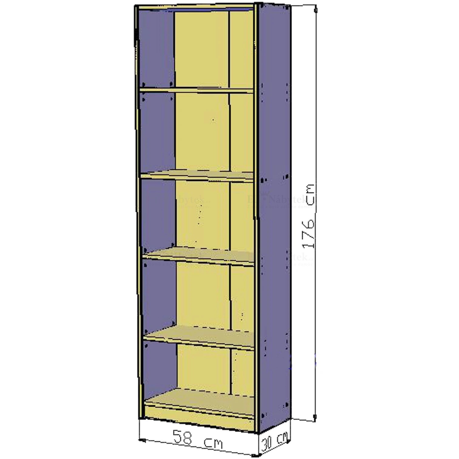 Regál OSKAR se skládá z 5 policových úložných prostorů. Svou jednoduchostí bude hodit do každého obývacího pokoje, ložnice i kanceláře. Je vyroben z kvalitní LTD. Rozměry jsou: šířka 58cm, výška 176cm, hloubka 30cm. V nabídce v několika barevných provedeních, které naleznete níže na stránce. Dodáváno v demontu.