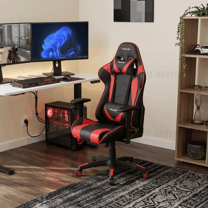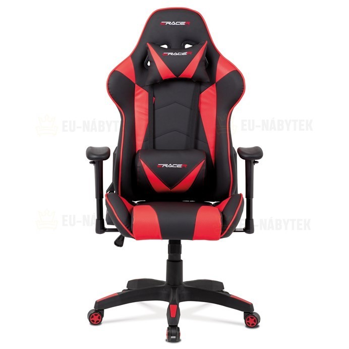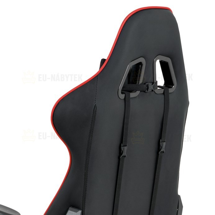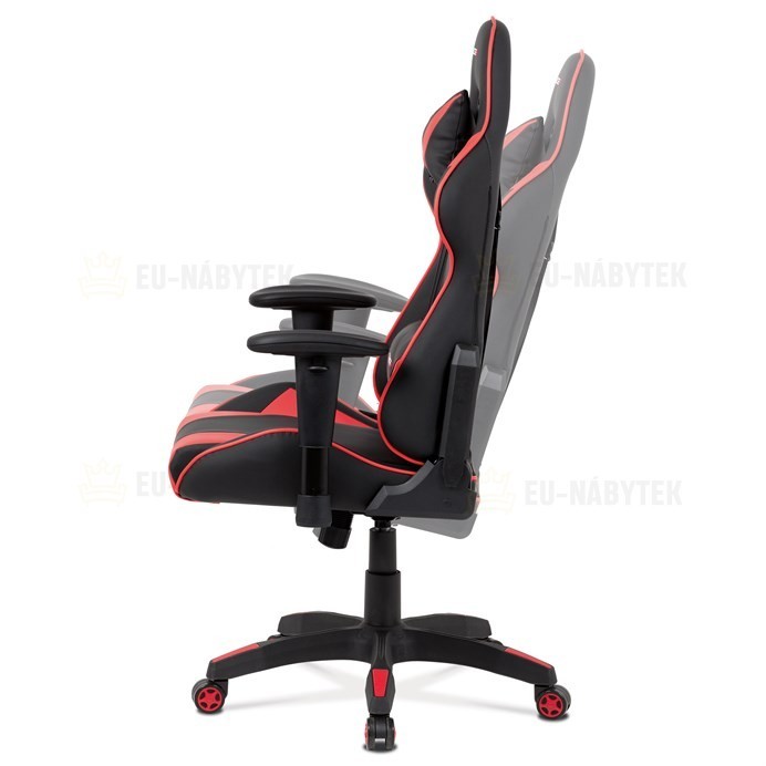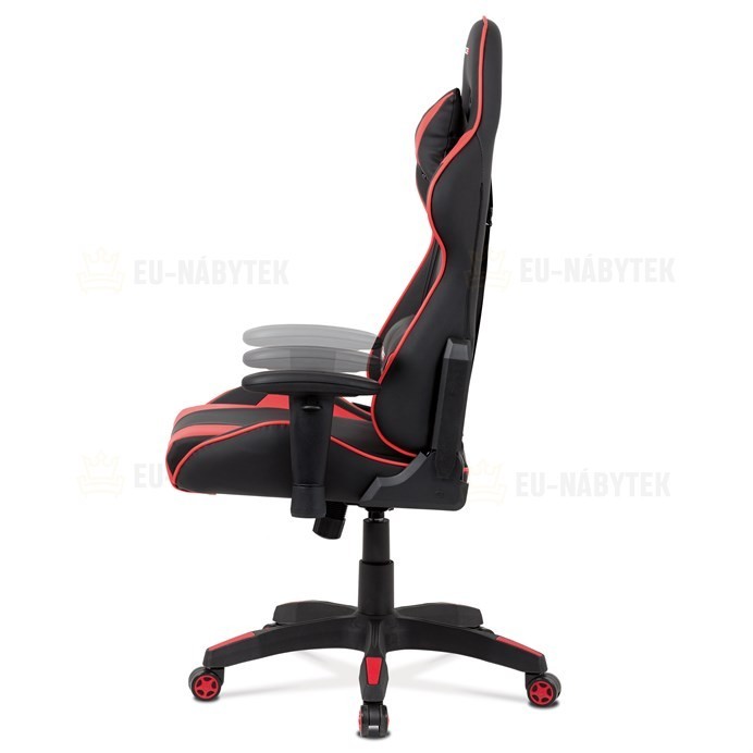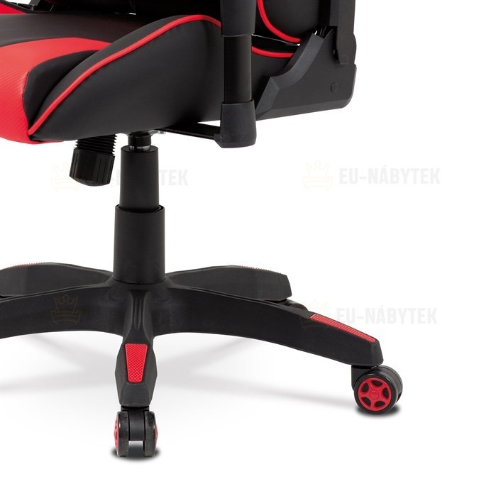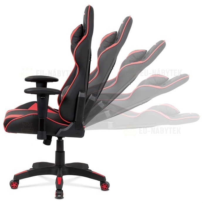 Kancelářská židle v provedení černá ekokůže s červenými detaily v dekoru "CARBON", univerzální (pogumovaná) kolečka, plastový kříž, výškově nastavitelné područky, polohovatelný opěrák až do polohy 180°, houpací mechanismus s možností nastavení tuhosti dle váhy uživatele. Součástí židle jsou 2…