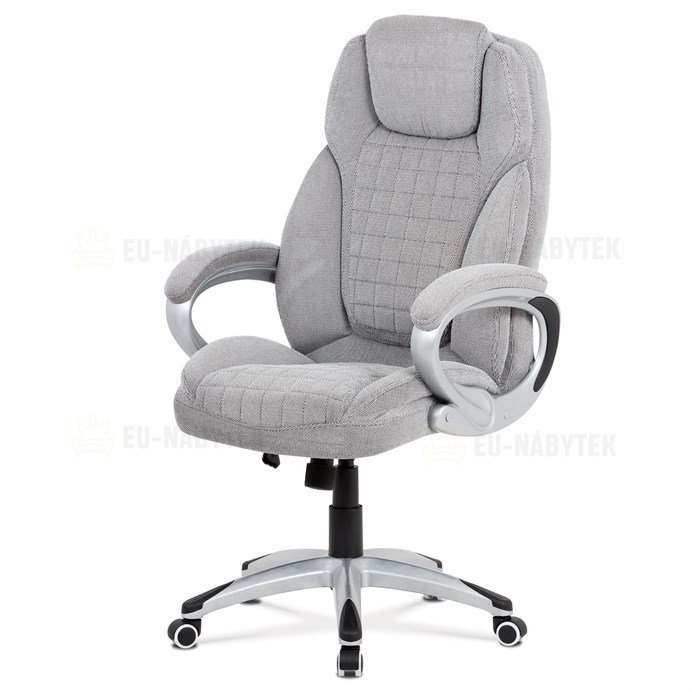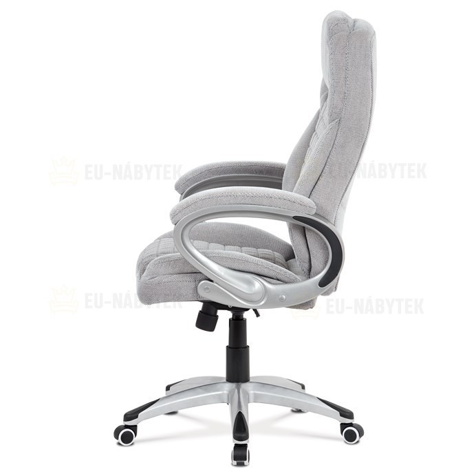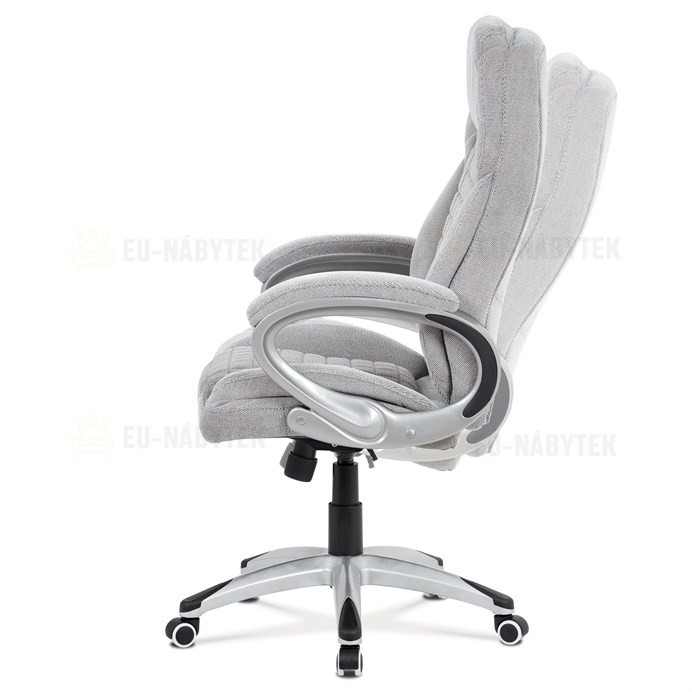 Moderní kancelářská židle potažená pololesklou šedostříbrnou látkou vzor pepito. Díky ultra pohodlnému sedáku a opěráku s výjimečným polstrováním, které jsou stylově tvarované, s elegantním prošitím a se super měkkým podhlavníkem se budete cítit jako v business class nejlepší letecké společnosti.…
