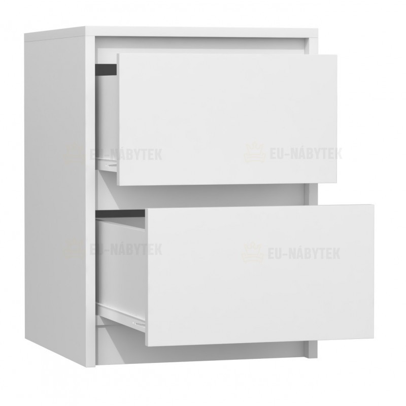 Moderní noční stolek v bílé barvě nyní v akční nabídce 1+1 ZDARMA – dva kusy za cenu jednoho. Ideální řešení k manželské posteli – získáte oba noční stolky najednou za zvýhodněnou cenu.